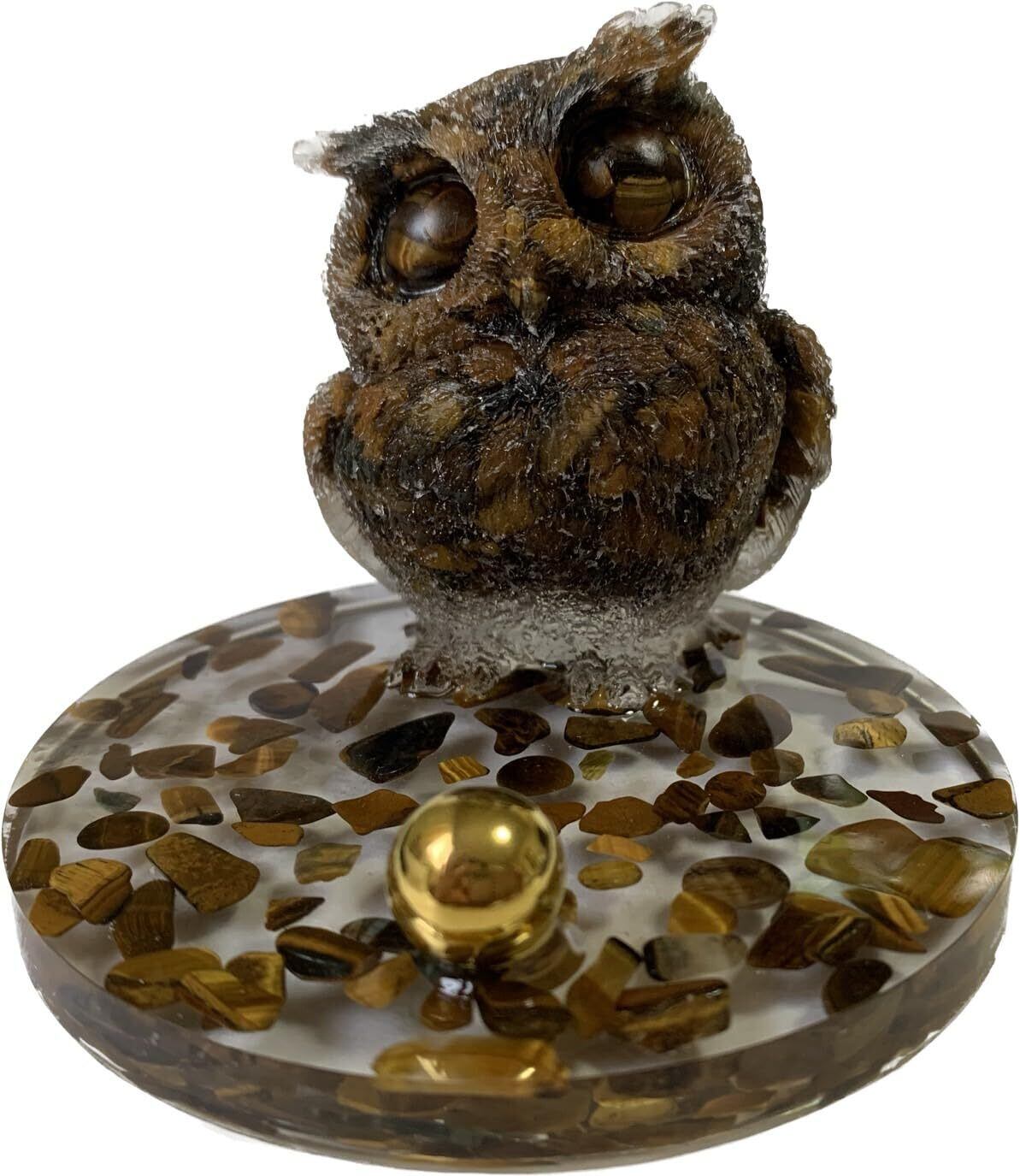 【Monshop】天然石 黒曜石 タイガーアイ 梟の置き物 樹脂 装飾 縁起物 幸運 動物の置物 (ふくろう タイガーアイ) フクロウ