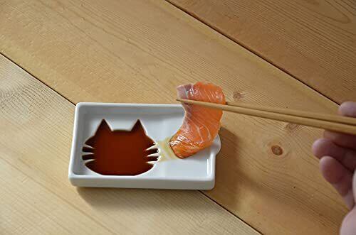 しょう油を入れるとネコが出てくるかわいいお皿です。しょう油入れと箸置きが一緒に!!傾斜になっているので余分なしょう油が切れて減塩に。スタッキング収納できます。