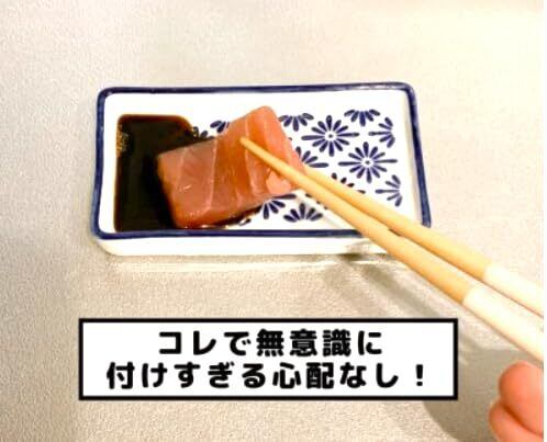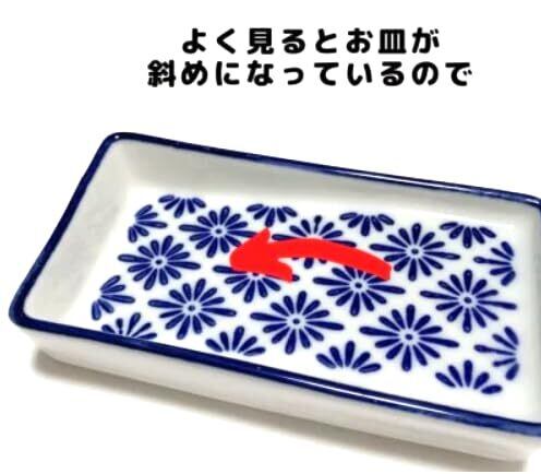 底が斜めになっていて醤油受けになってくれる優れモノ。 こちらの醤油皿は傾斜がついているものになっています。 深い所には醤油、浅い所には薬味などを入れて少量ずつ混ぜることができます。