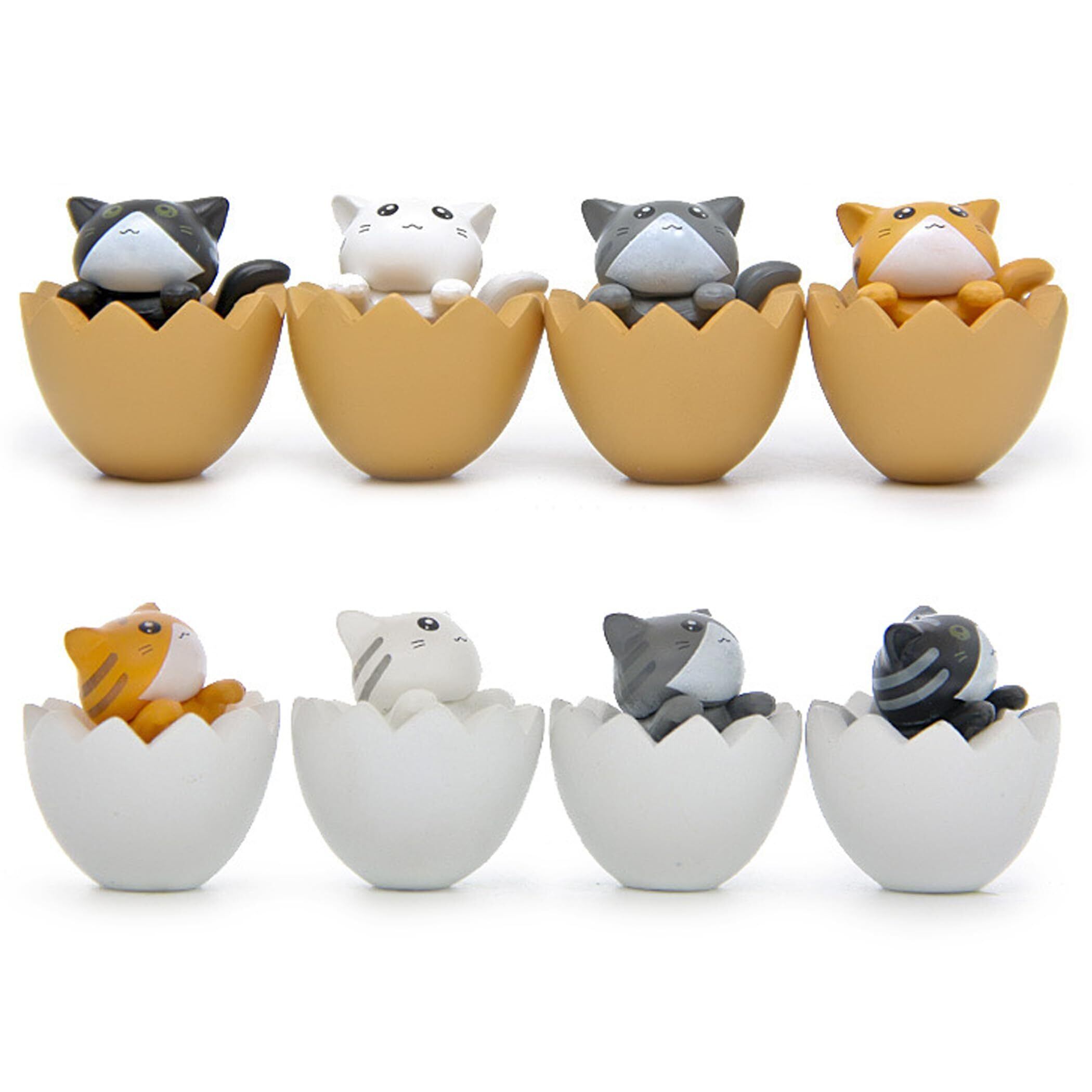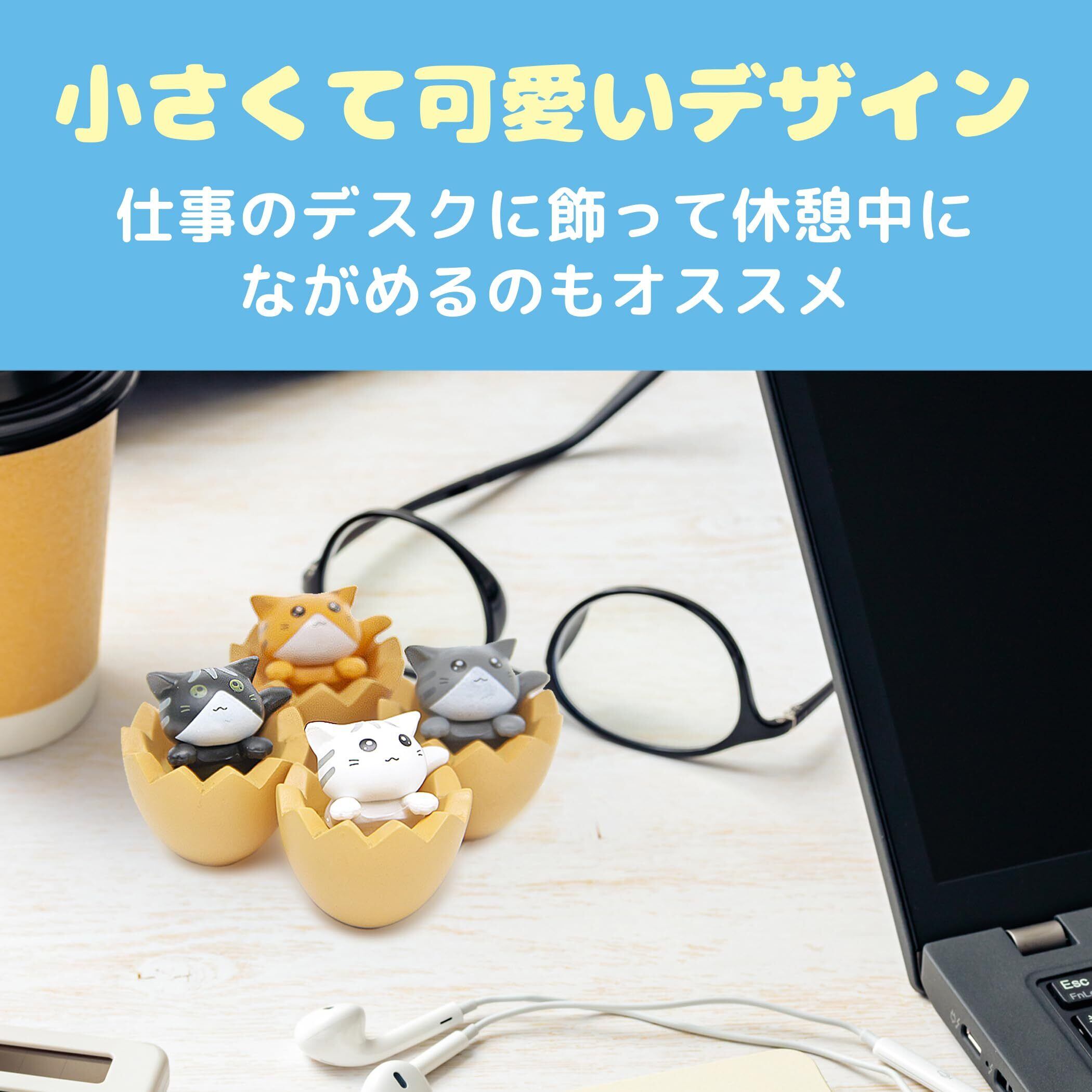 カラーの異なる8種類の置物:卵の殻や猫ちゃんのカラーが異なる8種類の猫の置物が揃ったセット品なので、招き猫の代わりとして玄関に並べて飾るのもおすすめです。仕事で使うデスクの上に飾るのもよいでしょう。