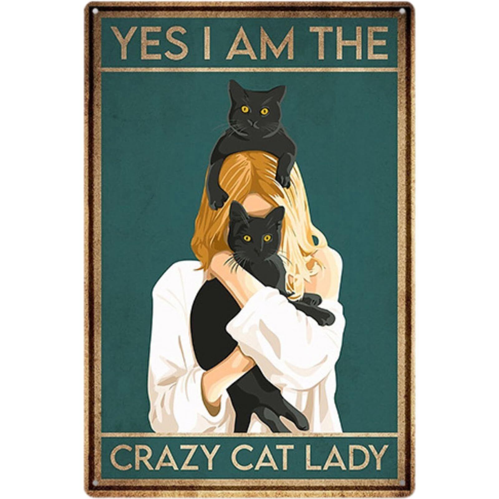 ブリキ看板 猫 レトロ YES I AM THE CRAZY CAT LADY 20×30cm 1枚 サイン プレート 壁掛け 4穴 軽量 ヴィンテージ アメリカン 英語 NYANDELMO ND-0290-R04-B-Cat-B-02