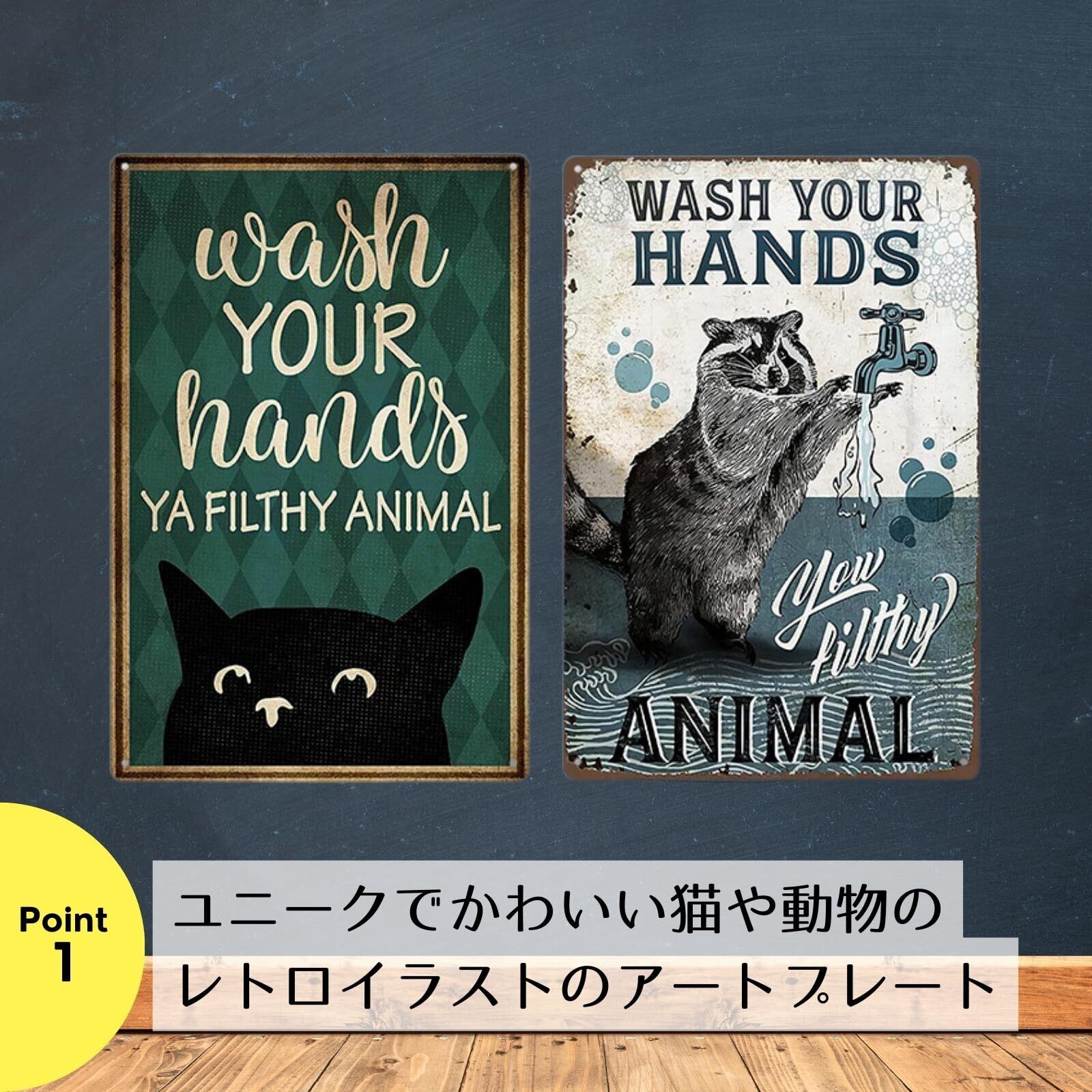 【サイズ・バリエーション】サイズ:約20×30cm。猫や動物モチーフのおしゃれなブリキ看板です。豊富なデザイン展開(ダンス、読書、庭、料理、コーヒー、ユーモア系など)からお選びいただけます。四隅に穴があり、画鋲・ピン・ロープ・両面テープ等で簡単設置可能。