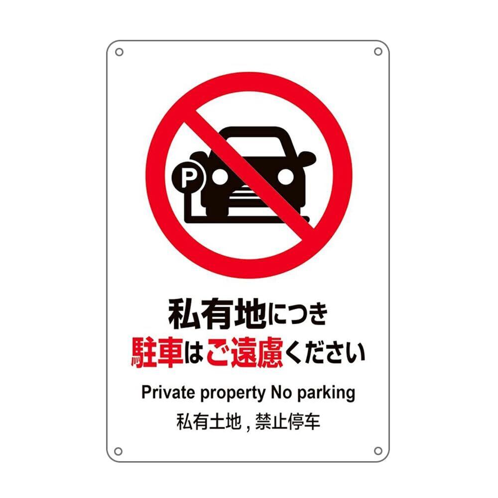 私有地につき駐車はご遠慮ください 看板 防水アルミ製看板 。駐車禁止3か国語 ぶらさげる注意安全標識 結束バンド止め 取付簡単
