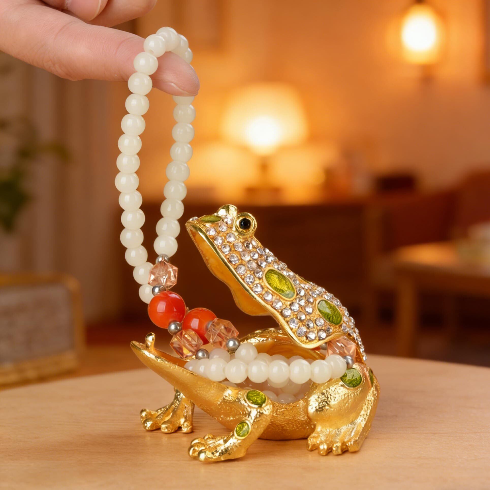 【在庫セール】カエルの小物入れ ヒンジ付きフロッグフィギュア 棚用 クリスタルカエル ホーム装飾 カエルのギフト 女性&男性向け