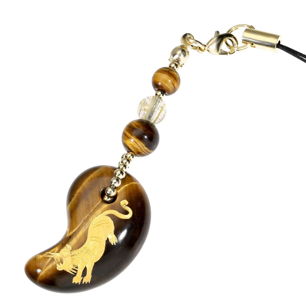 [新宿銀の蔵] タイガーアイ 勾玉 手彫り 虎 ルチルクォーツ 携帯ストラップ金運 財運 仕事運 魔除け 天然石 パワーストーン お守り