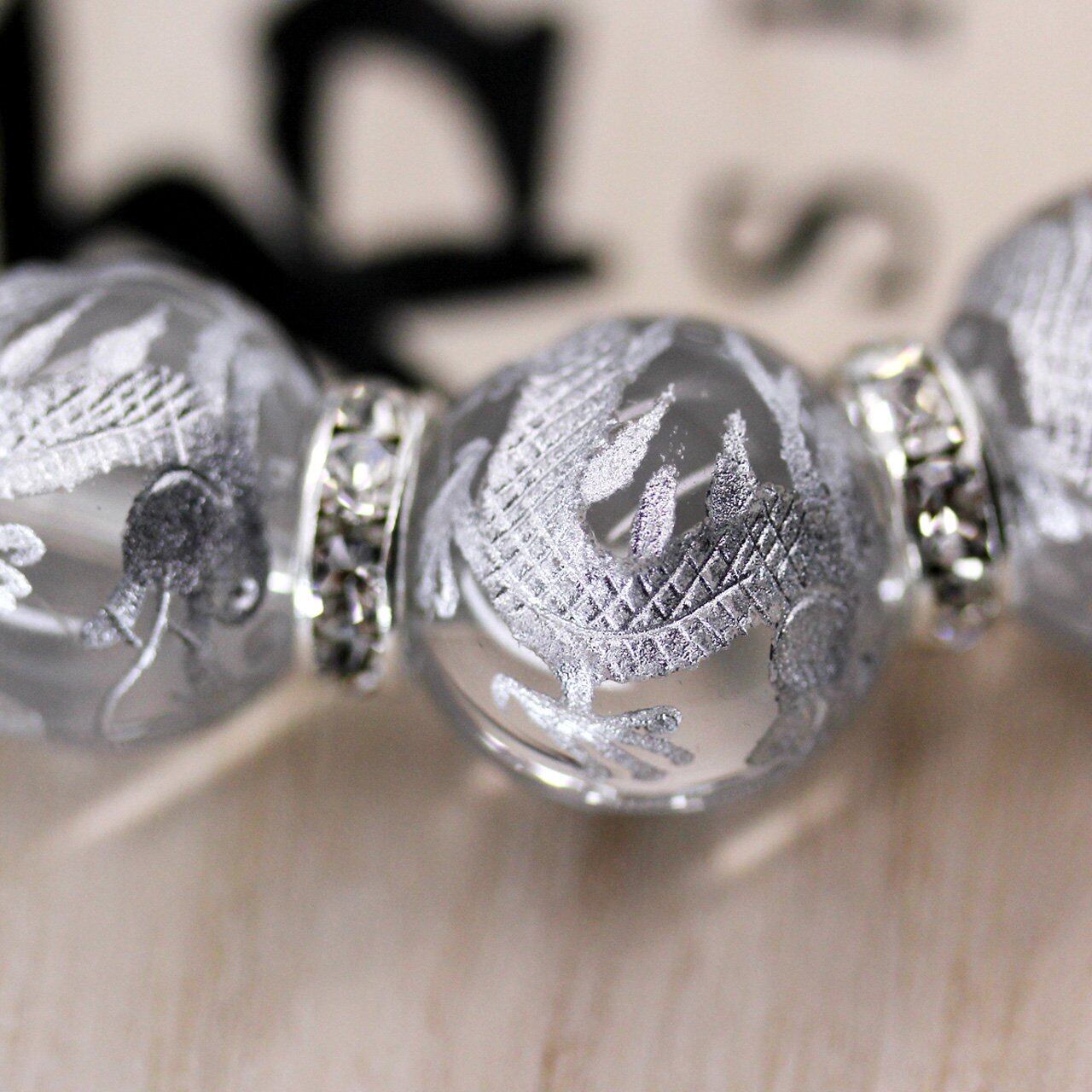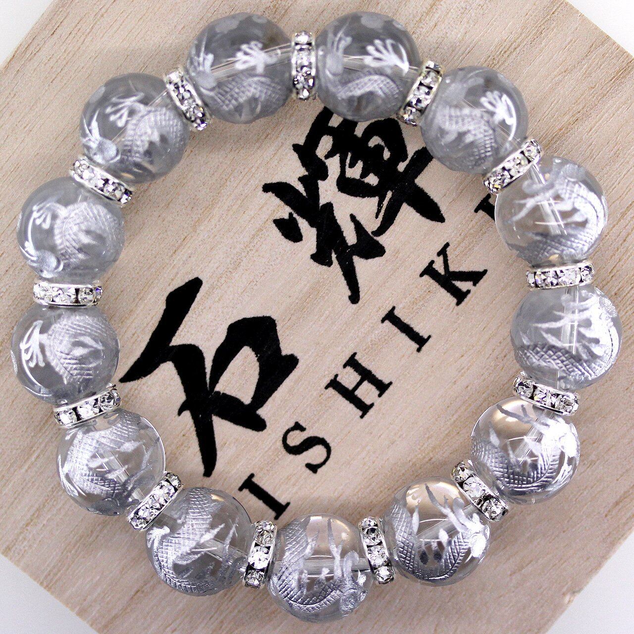 [石輝] 銀彫り五本爪皇帝龍 水晶 16mm シルバーロンデル 数珠 メンズ ブレスレット 桐箱付き 天然石 [b182]