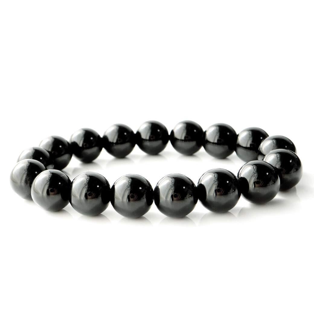 [GOLD STONE] モリオン 黒水晶 ブレスレット 12mm チベット産 天然石 パワーストーン モーリオン 天然クォーツ 鑑別済み 専用BOX付 内径 約17cm
