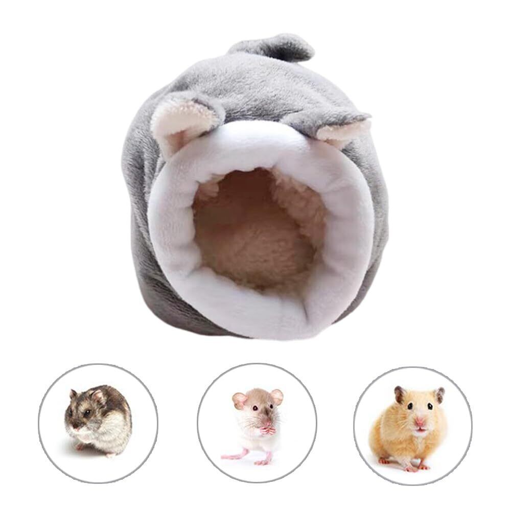 LIKENNY 冬用ハムスタークッションベッド 暖かいハムスターハウス 寝袋 遊び場 休憩所 暖かい巣 防寒 保温 中敷き付 小動物用 寝袋 水洗い可能 (グレー, 16*15*13cm)