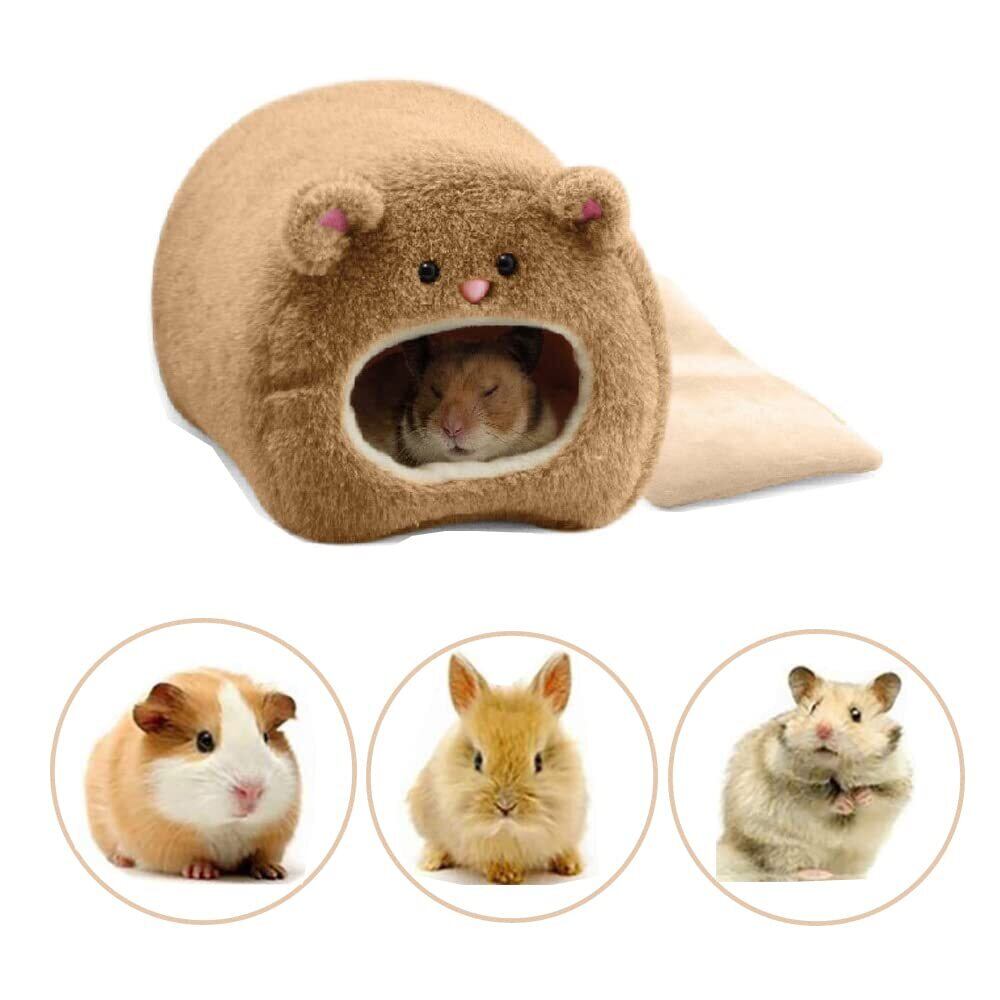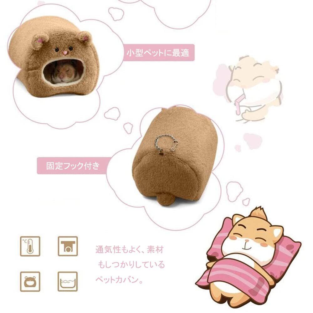 LIKENNY 冬用ハムスタークッションベッド 小動物用ハンモック 暖かいハムスターハウス 遊び場 休憩所 暖かい巣 防寒 保温 ケージに固定 小動物用 寝袋 11*11*8cm 水洗い可能 (ブラウン)