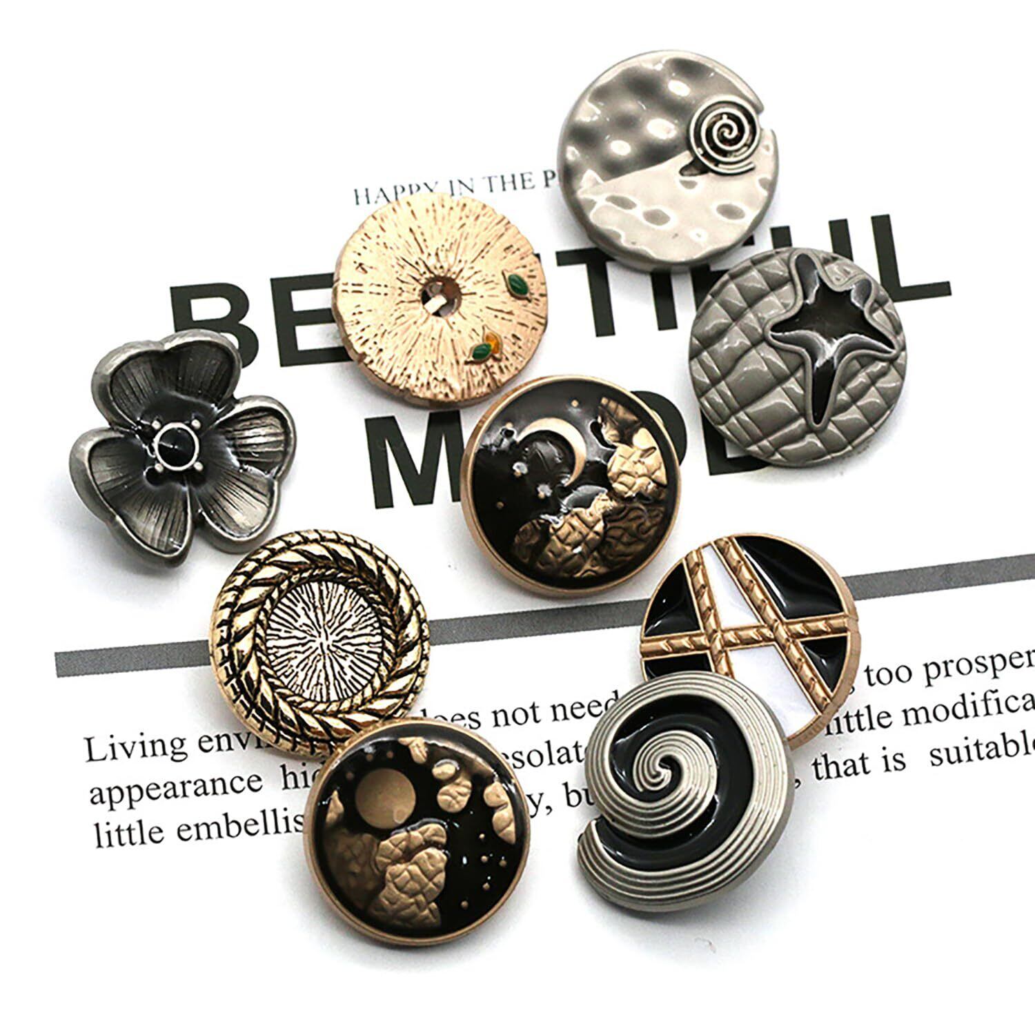 10 個入り ヴィンテージ 丸型シャンク レトロ金属模様ボタン 縫製衣類用 ハンドメイドクラフト アクセサリー 装飾品