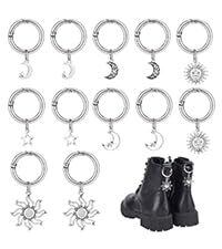 【在庫セール】[PH PandaHall] 12個 6種類 シューチャーム 合金製 スプリングゲートリング付きシューズ チャーム 太陽 月 星モチーフ 靴用 ペンダント スプリングゲートリング付き ゴシック パンク ヴィンテージ風 スニーカー サンダル ブーツ 装飾 メンズ レディース アクセサリーパーツ