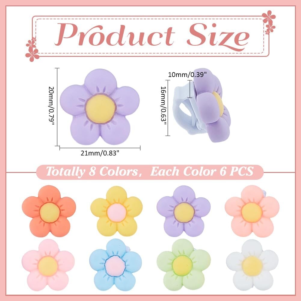 【樹脂の素材】これらのシューズチャームは樹脂製で安定性と耐久性に優れ、壊れにくく色褪せしにくい特徴があります。鮮やかな発色で滑らか、花びらの縁部分にバリがなく、靴や足を傷つけません。強度があり長期間使用可能で、変形や色褪せしにくい特性を持っています。