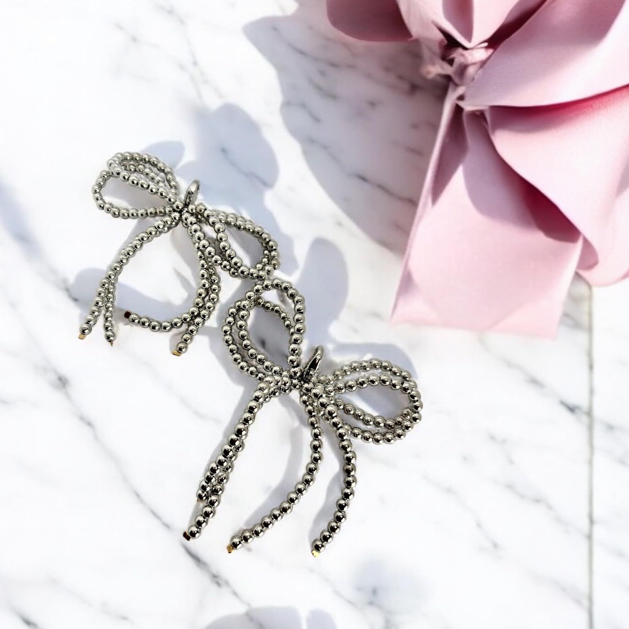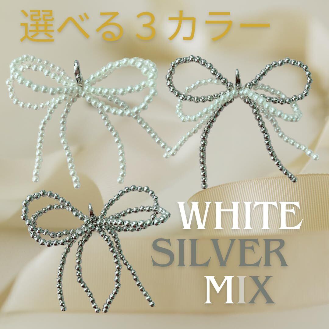 [alldeblue]スニーカー アクセサリー シューズピアス 2個セット 7cm リボンチャーム シューアクセサリー (シルバー)