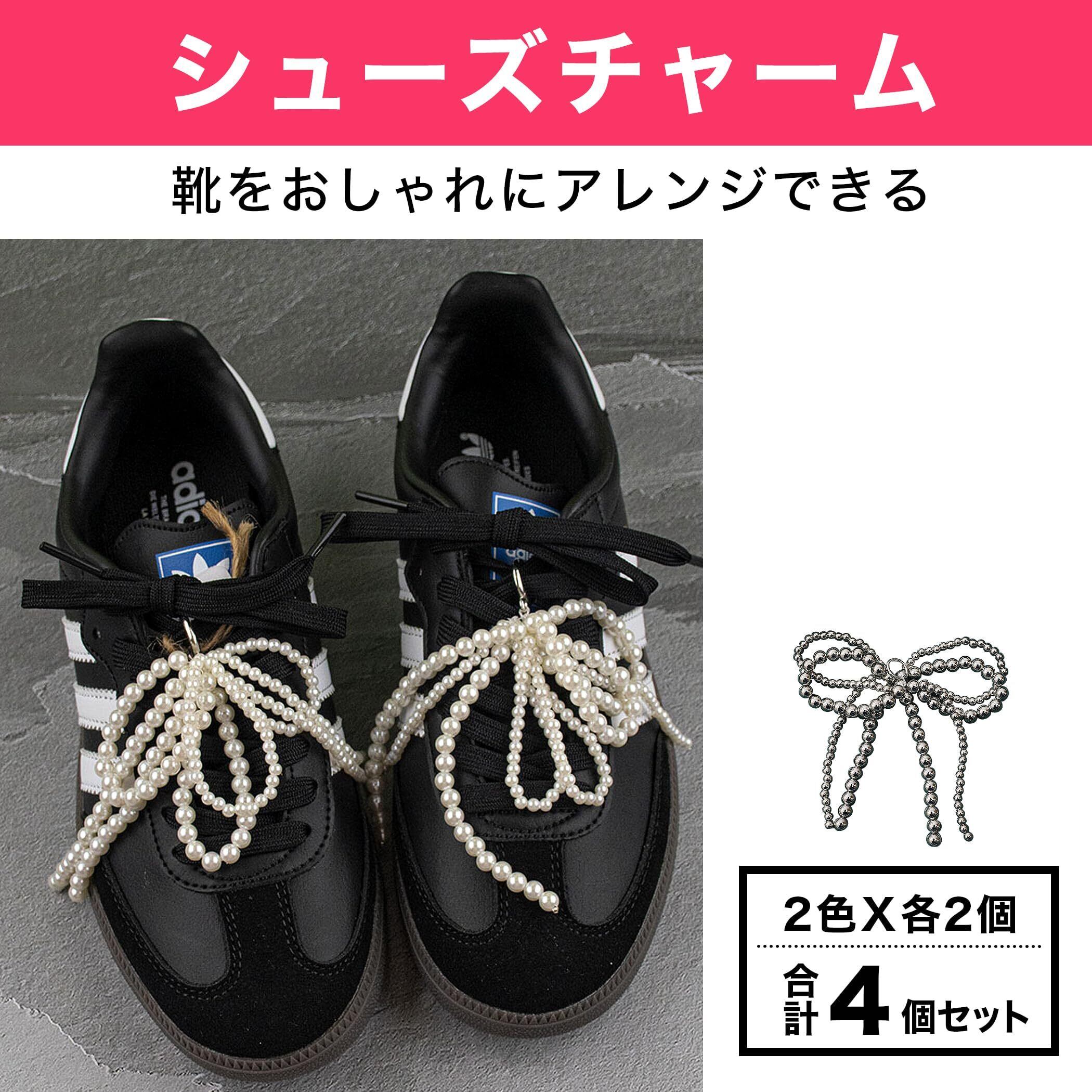 [HAMILO] シューズチャーム 蝶結び 飾り スニーカー デコレーション 2色 合計4個セット