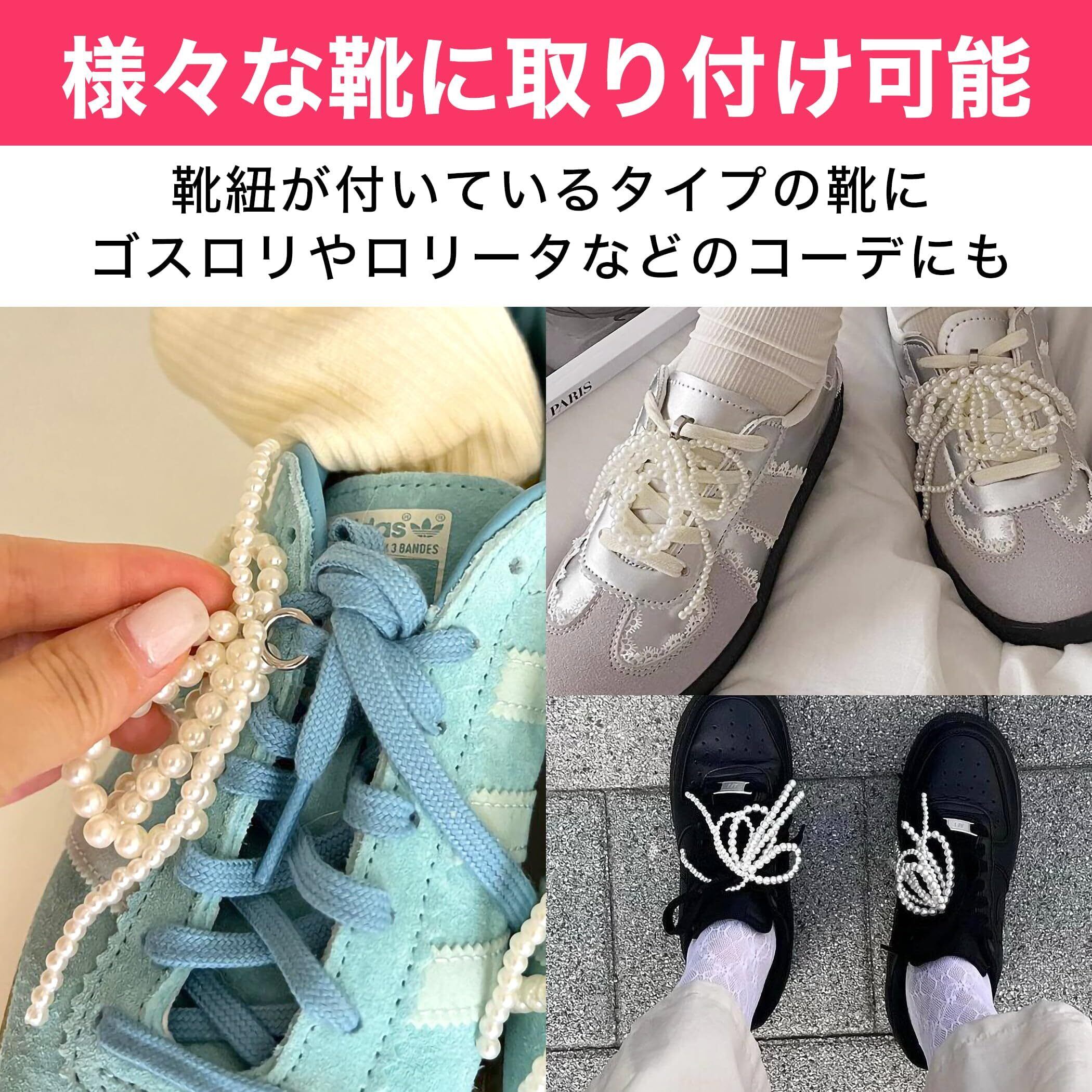 スニーカーや革靴などに取り付け可能:靴紐が付いているタイプの靴であれば、スニーカーや革靴など、様々な靴に取り付けることができます。ゴスロリやロリータなどのコーディネートに取り入れるのもよいでしょう。