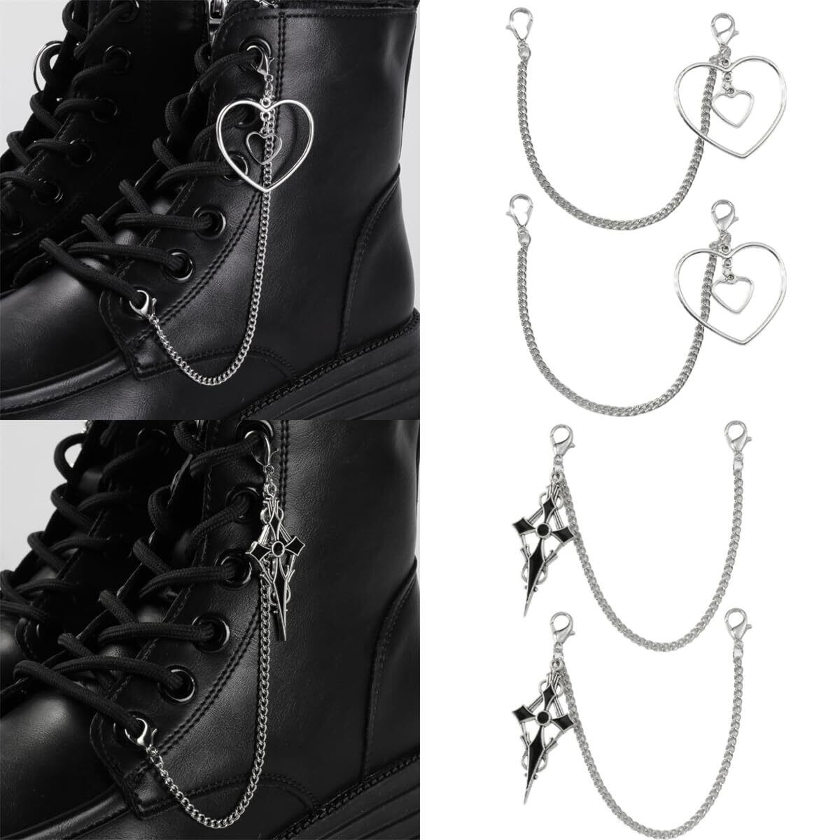 セット内容: スニーカーやブーツ用のチェーンチャーム2組セット、スタイリッシュな装飾アクセサリー