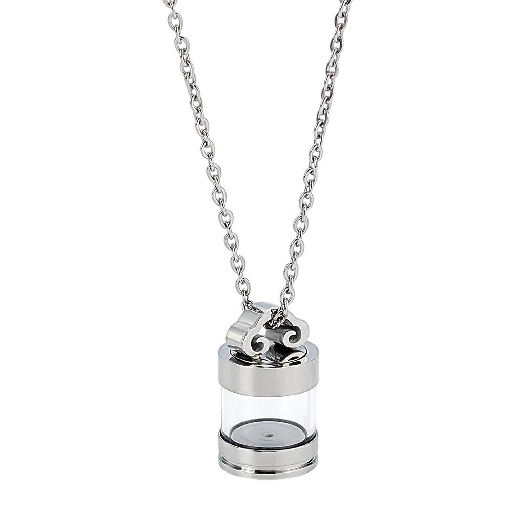 【追悼ネックレス】チェーンと円柱型透明ガラス瓶付きの銀灰ネックレスは、母、父、祖母、祖父、夫、妻、兄弟、姉妹、息子、娘、叔父、叔母、友人、愛する人、猫、犬、そして可愛いペットを偲ぶのに理想的な記念品です。