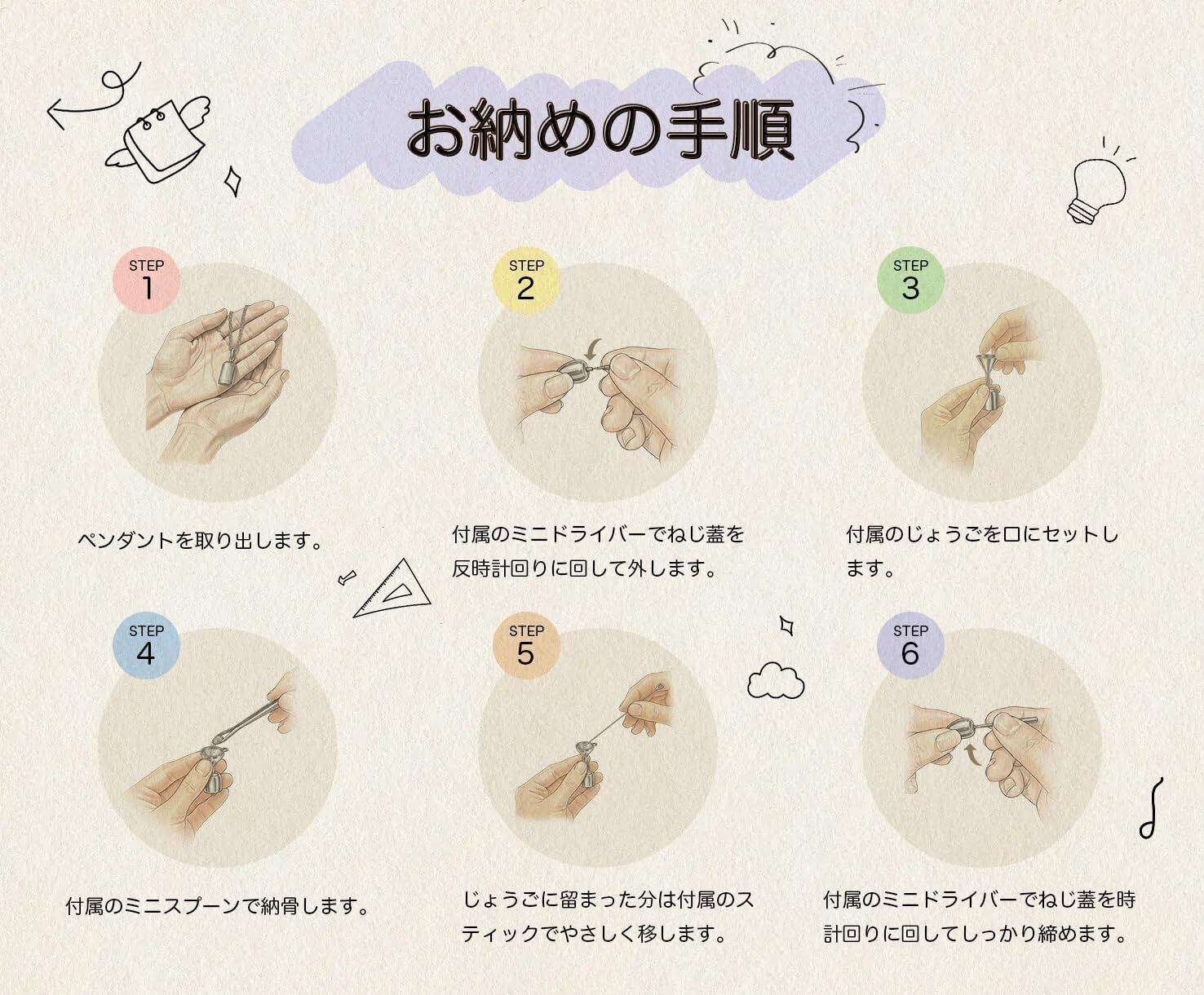 【豊富な付属品で届いた瞬間から寄り添える】ミニスプーン、じょうご、スタンダードキーリング、桜柄キーリング、防水ポーチ、ポリッシングクロスなど、納骨に必要なものがすべて揃った安心セット。届いたその日から落ち着いた気持ちで大切な存在を丁寧におさめ、胸元でそっと感じられます。桜型のペンダントは、春の光やあたたかな風を思わせ、重い気持ちをやさしくほぐしてくれる小さな居場所です。