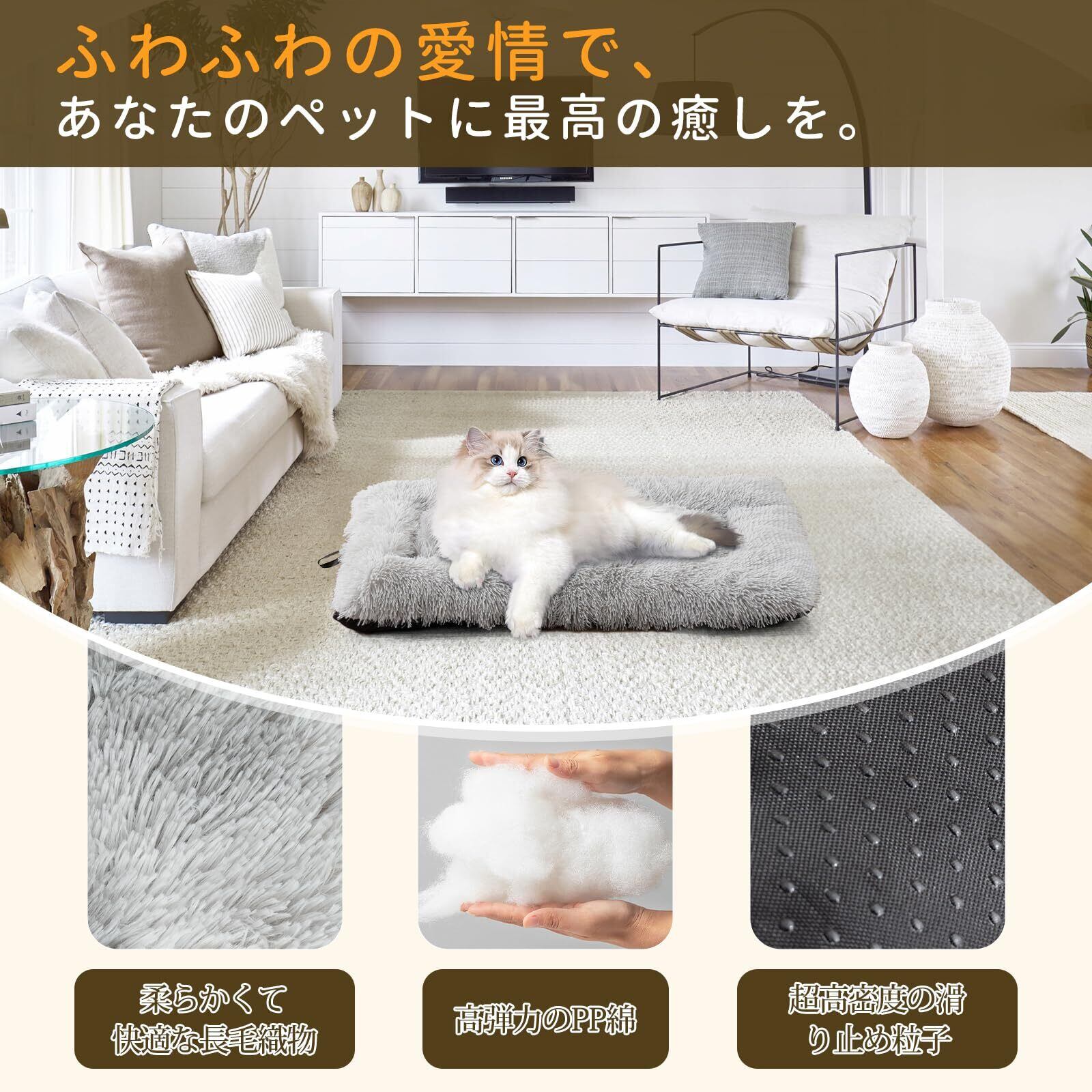 ふわふわ ペット ベッド 長毛厚手 犬 ベッド 防寒 暖かい 猫 ベッド 冬用快適クッション 通年使用 犬猫用 洗濯可能 柔らかいペットマット 滑り止め 小型犬猫適用 60*40*7cm Sサイズ 大さい