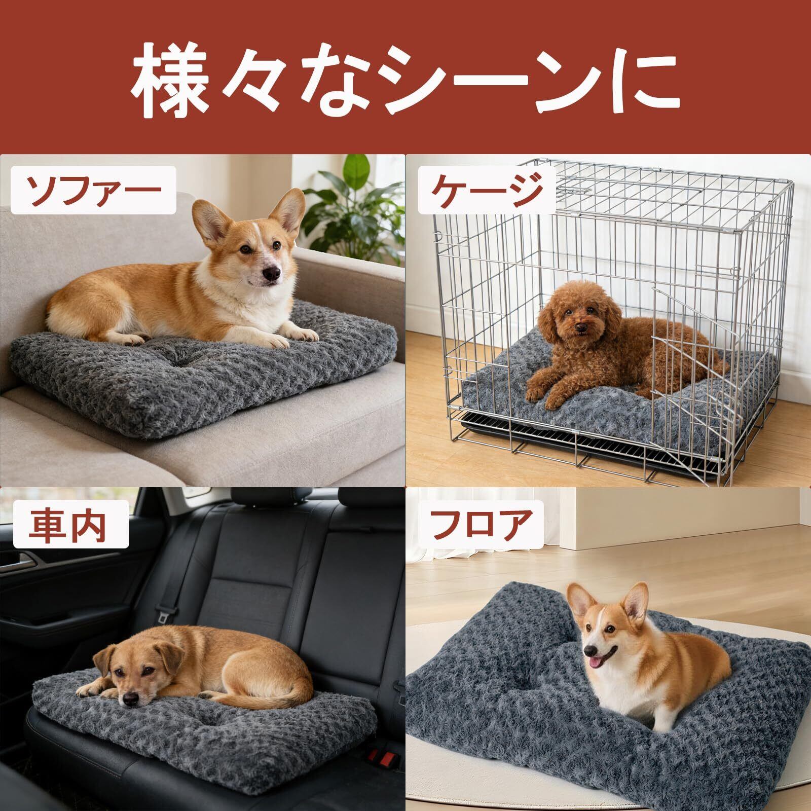 【多様なシーンで使用可能】部屋の床だけでなく、ソファや車の中など、様々な場所に置いてペットに使用させることができます。持ち運びも便利で、ペットと一緒に外出する際にも持って行きやすいです。