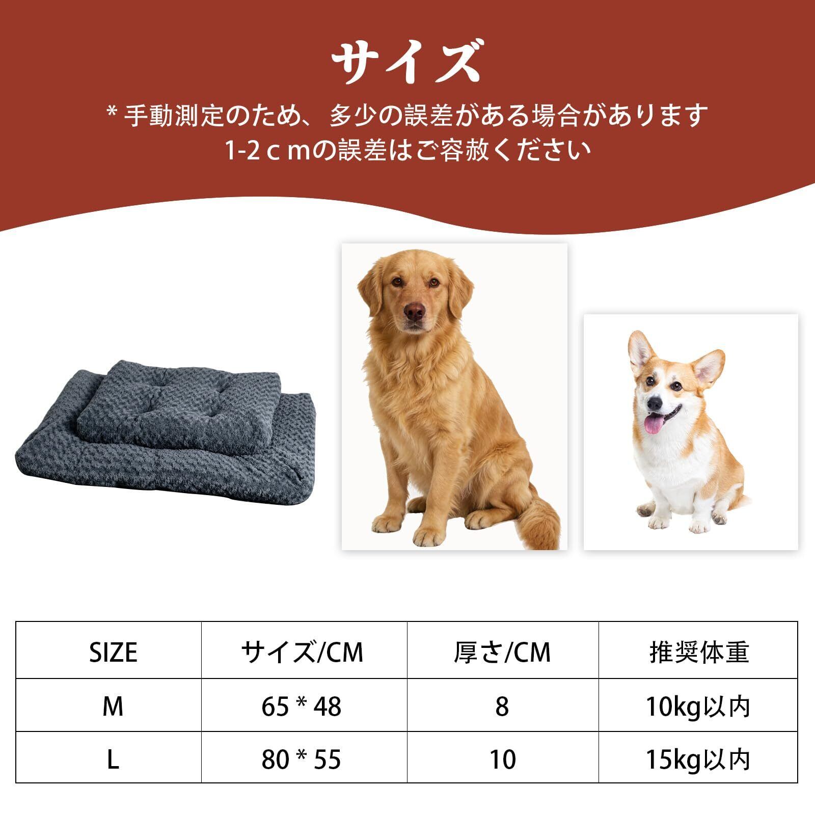 【商品仕様】詰め物:PP棉;サイズ:長さ80cm×幅55cm×高さ10CM;重量:1000g、推奨体重:15kg以下のペット。【保証】商品に初期の瑕疵や間違いがあった場合は、すぐ、に当店まで連絡してください。迅速に対応し、品質保証でご安心してお買い物いただけます。