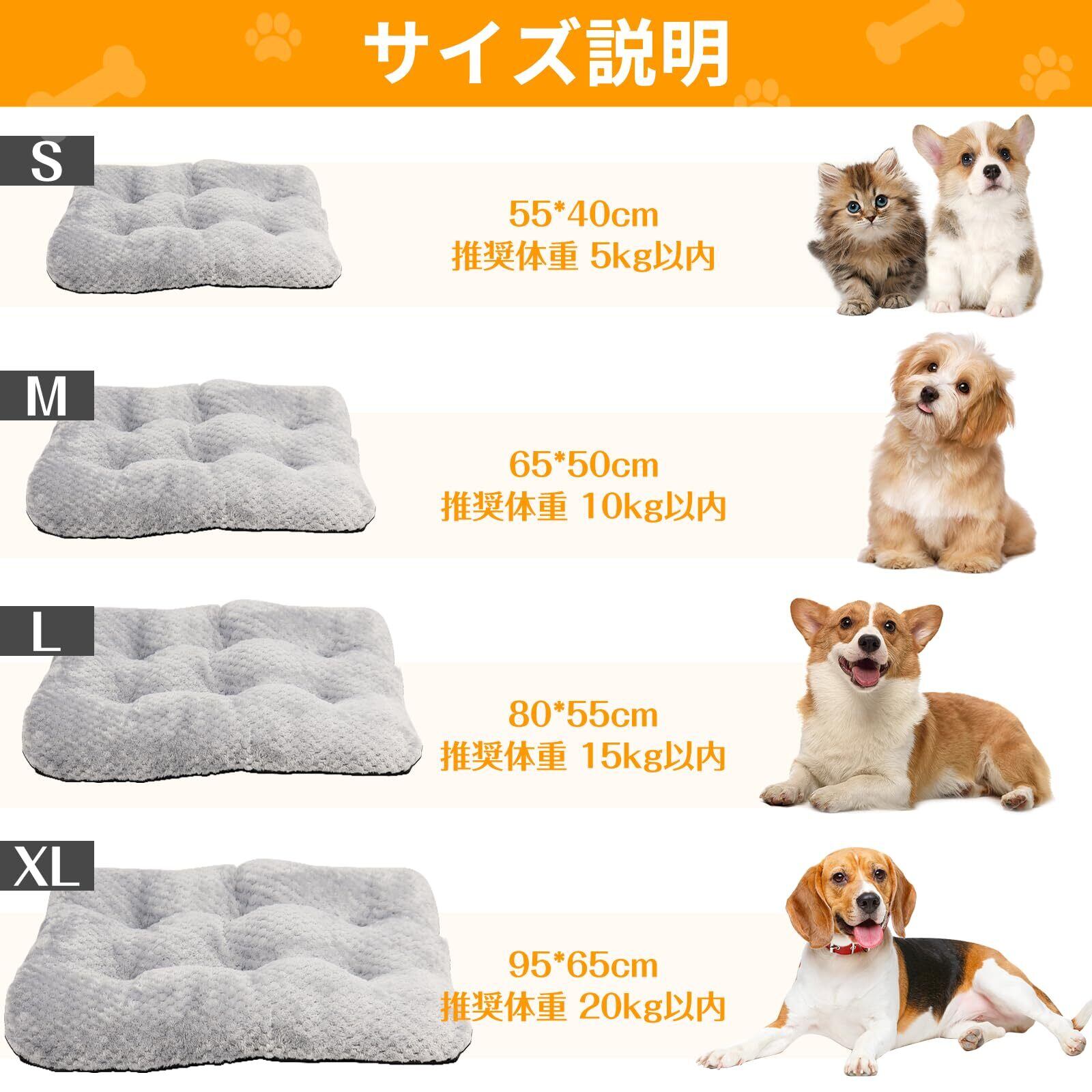 【サイズ選択】Sサイズ:55*40*12cm、重量0.45g(5kg以内の子にお勧め) Mサイズ:65*50*12cm、重量0.66g(10kg以内の子にお勧め) L サイズ:80*55*12cm、重量1kg(15kg以内の子にお勧め) XL サイズ:95*65*12cm、重量1.3kg(20kg以内の子にお勧め)適用対象:全種類の猫、犬、うさぎとほかの小動物におすすめのペットベッドです。