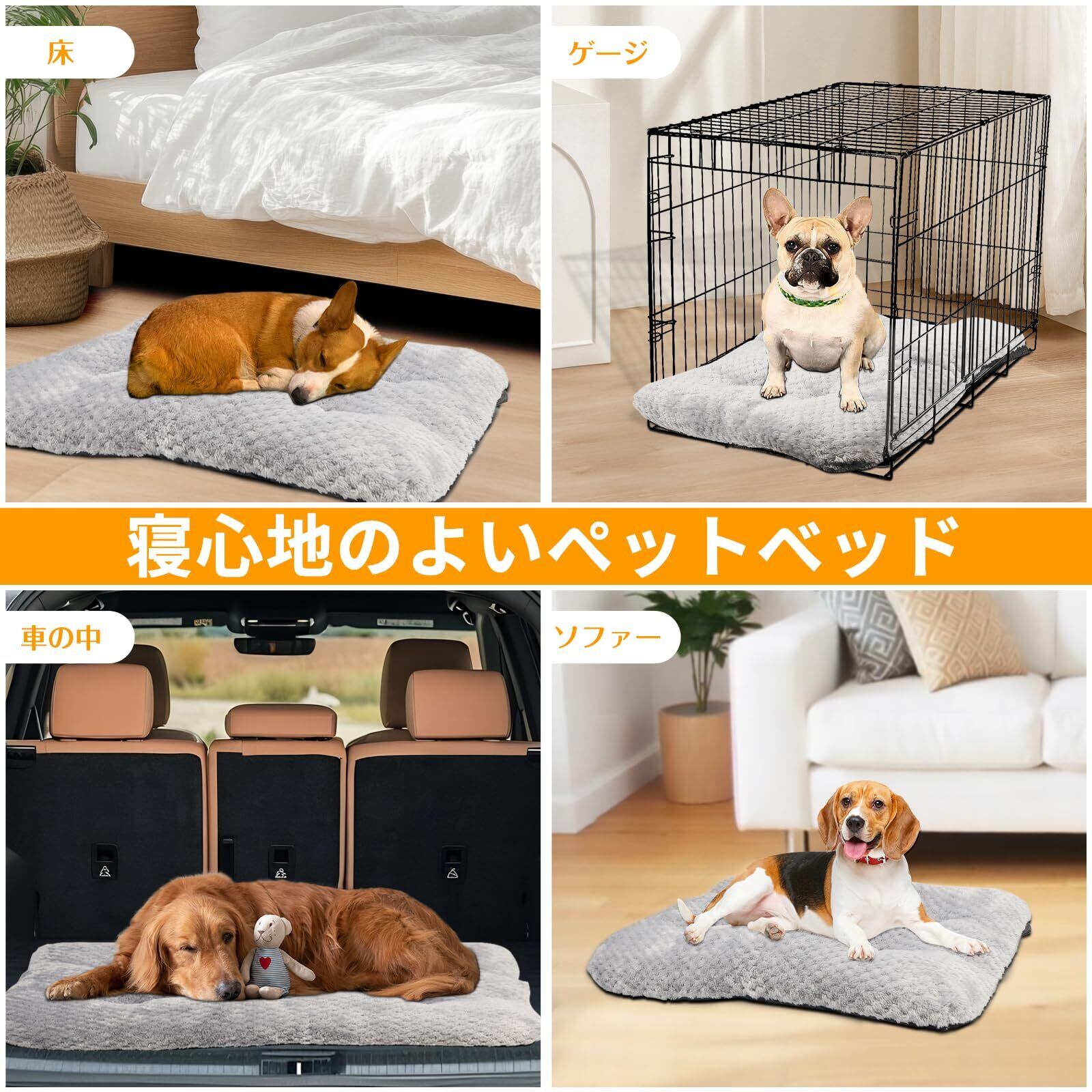 【幅広い用途】当社のペットベッドはご自宅の床だけでなく、車内の敷物としても素晴らしい商品です。ペットクッション、ペットマット、犬 ベッド、猫 ベッド、ペットソファ,どこに置いても視覚的に素晴らしいです。