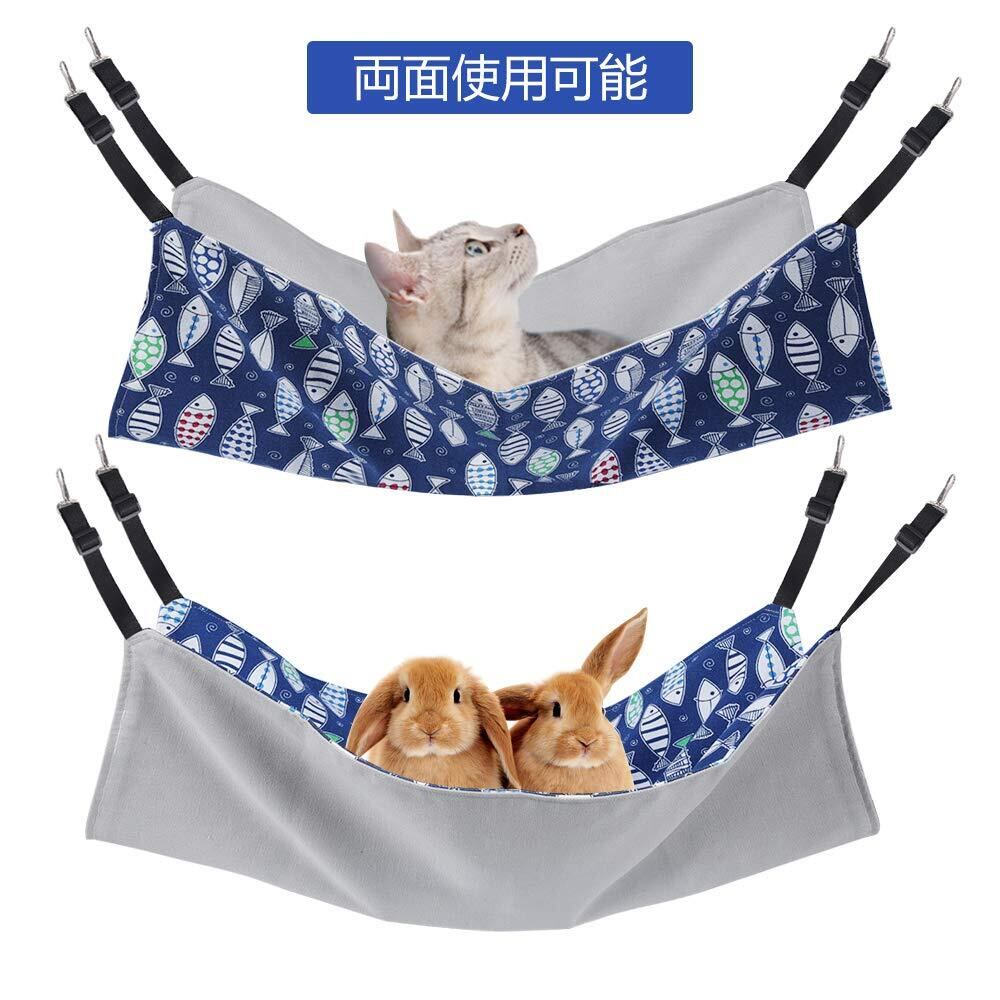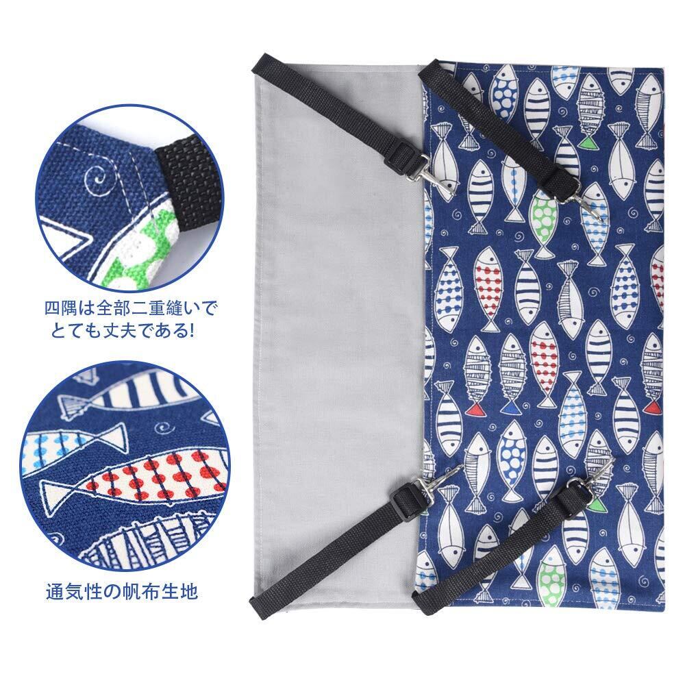 猫 ハンモック Blueekin キャットハンモック ヒモ調整可能 ペット ベッド ネコハンモック ケージ用 耐荷重10KG 大きい 56cm x 46cm 通気性 日向ぼっこ 遊び場 丸洗い 金具丈夫 夏冬両用(魚柄)