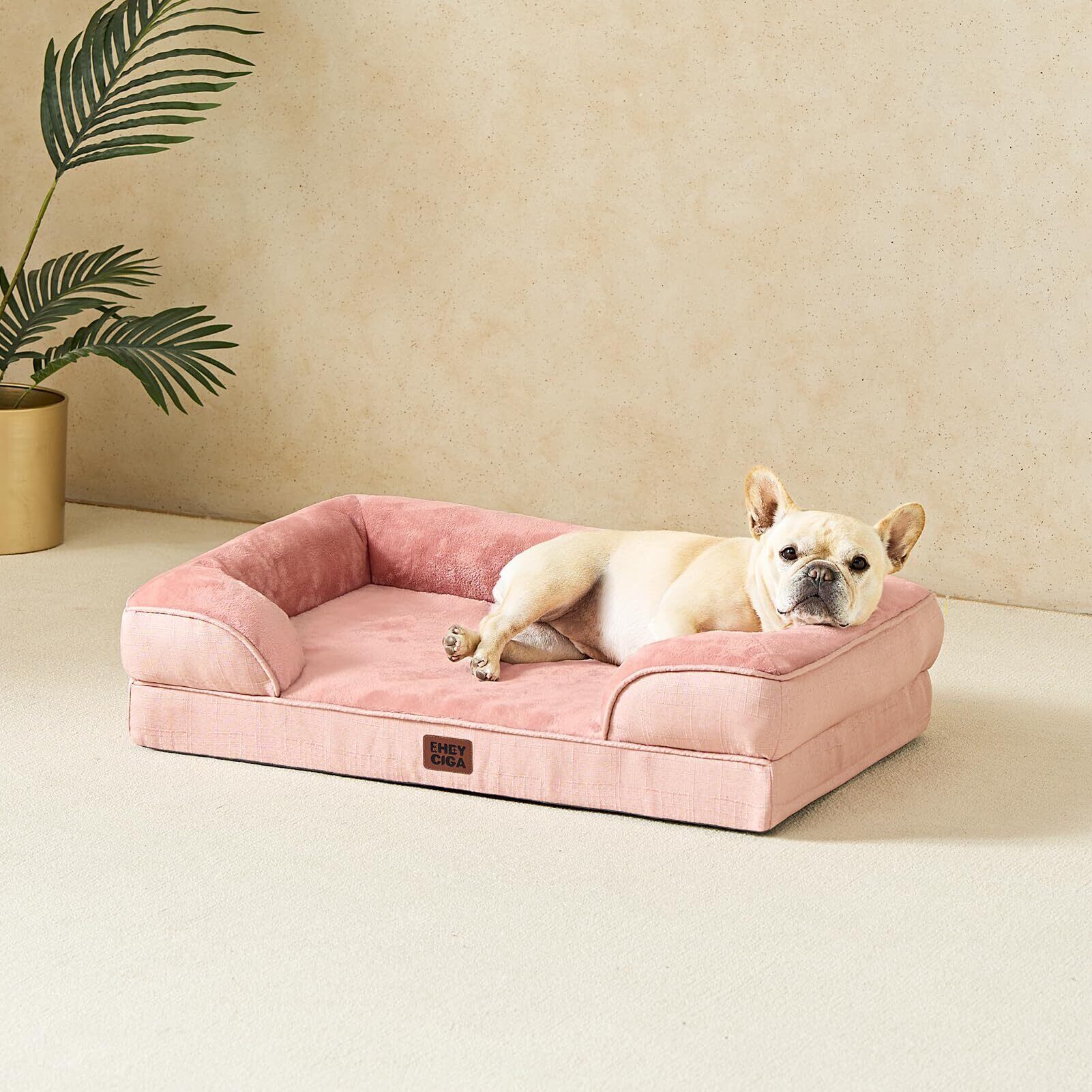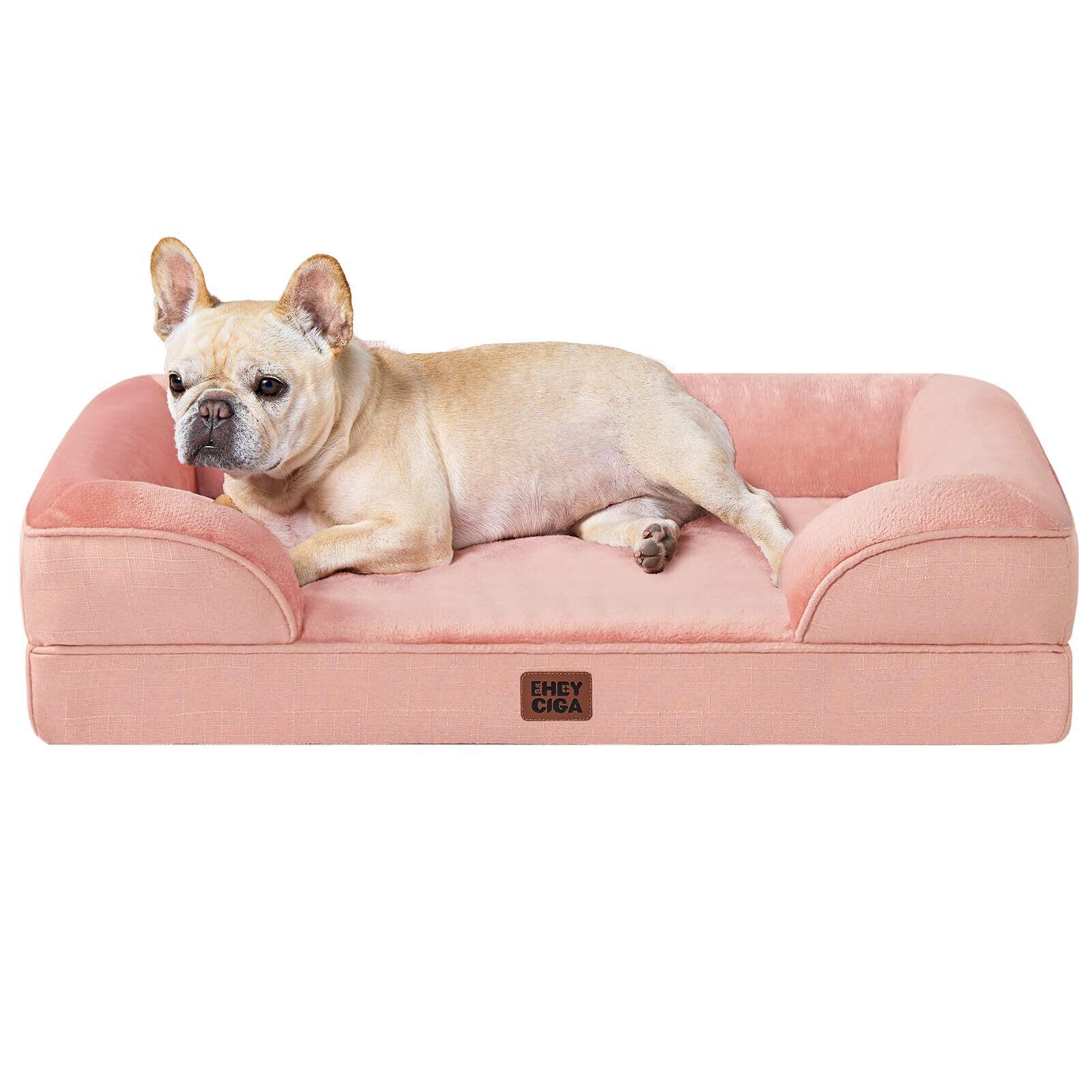 EHEYCIGA 犬 ベッド 冬 ペットベッド 防水 猫 ベッド 洗える 犬用 クッション 高反発 取り外せるカバー 滑り止め オールシーズン 小型犬 中型犬(76x51x16.5cm,ピンク)