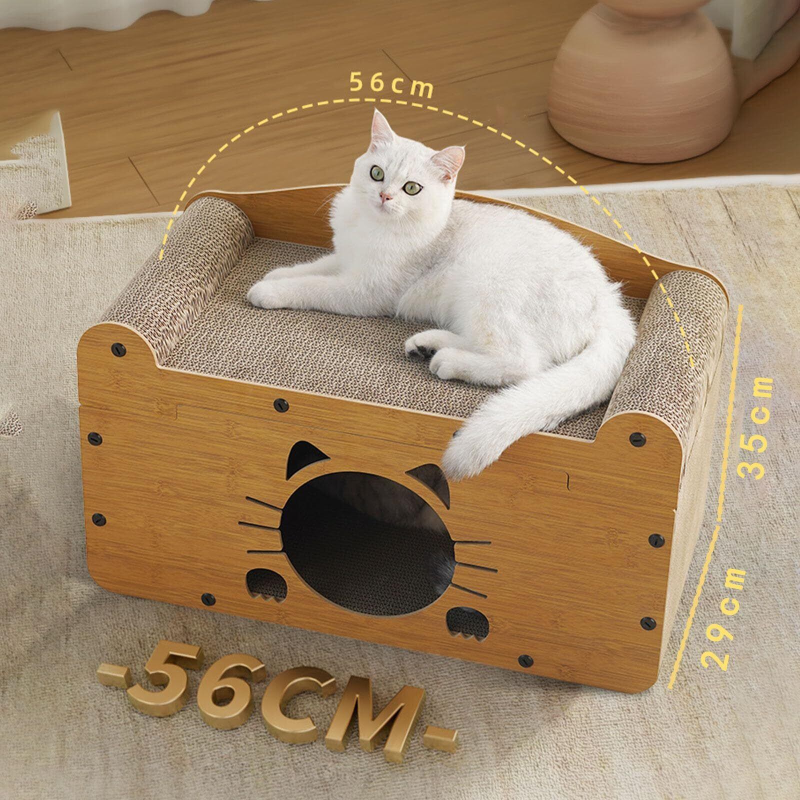 大型 猫 爪研ぎ 段ボール、キャットハウス、キャットソファ 3-in-1多機能 木製 大きいサイズの二重層 猫 爪とぎ 猫 ダンボール 耐久性 高密度 四季対応 家具傷防止 運動不足改善 ストレス解消 両面使用可能 猫 おもちゃ,56×29×35cm(タイプA)