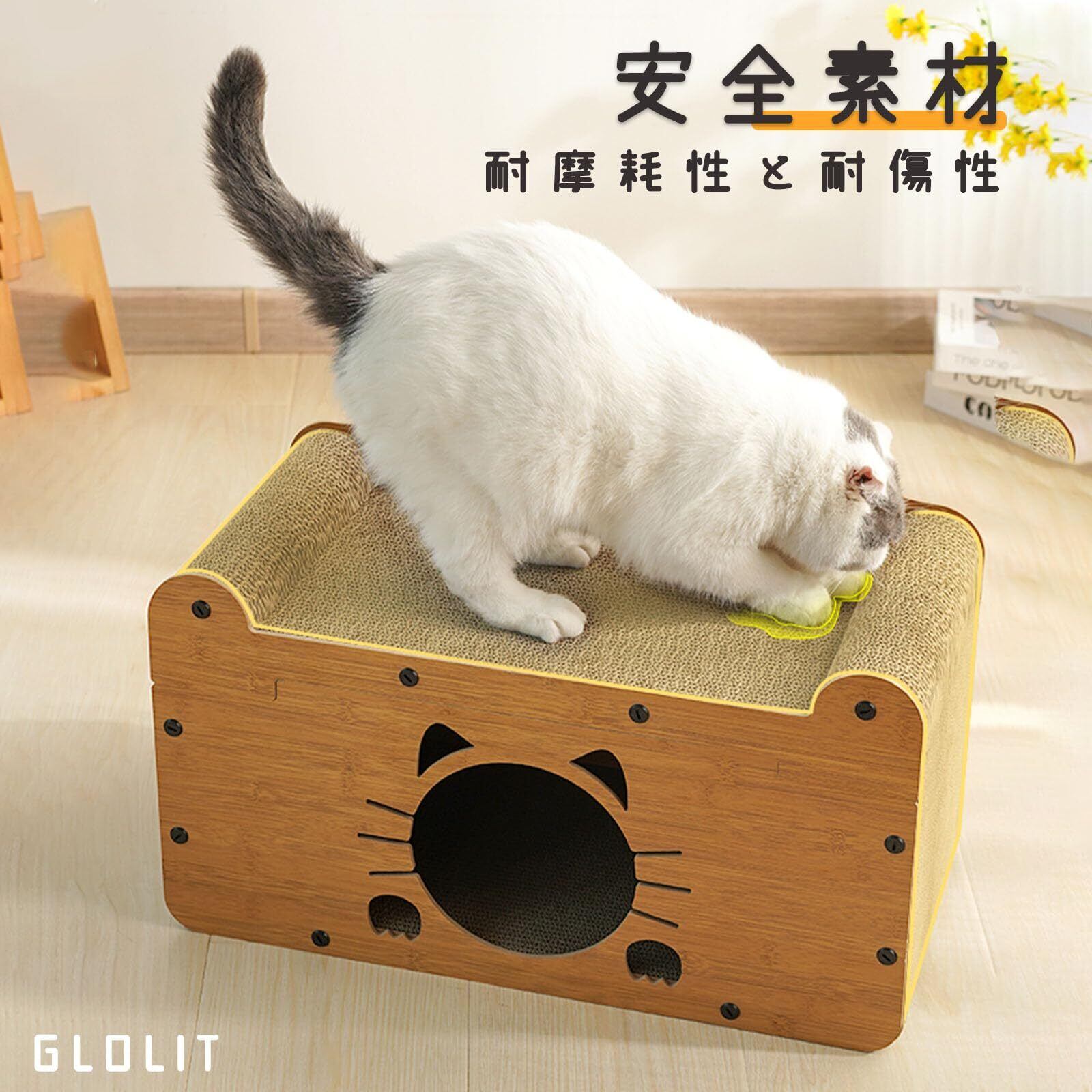 【3in1の多機能猫スクラッチボード】この多機能な猫の抓板は、爪研ぎ、遊び、そしてくつろぎのために設計されています。猫が健康な爪を維持し、遊びながら運動し、快適な寝床でくつろぐための理想的な場所です。