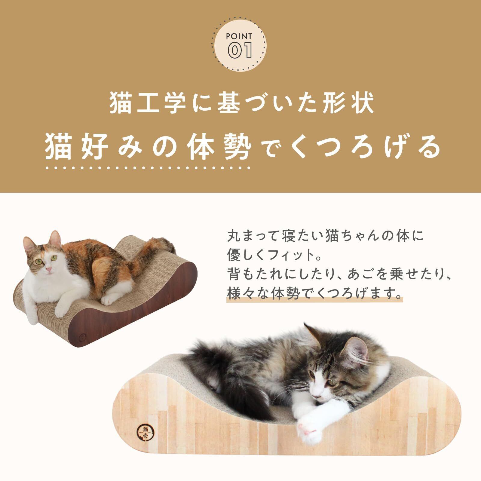 【猫工学デザインのまんまるカールのつめとぎベッド】 猫工学に基づいたまんまるカールが、猫の柔らかなからだに優しくフィットします。 つめとぎとしてはもちろん、ベッドとしてもお使いいただけます。