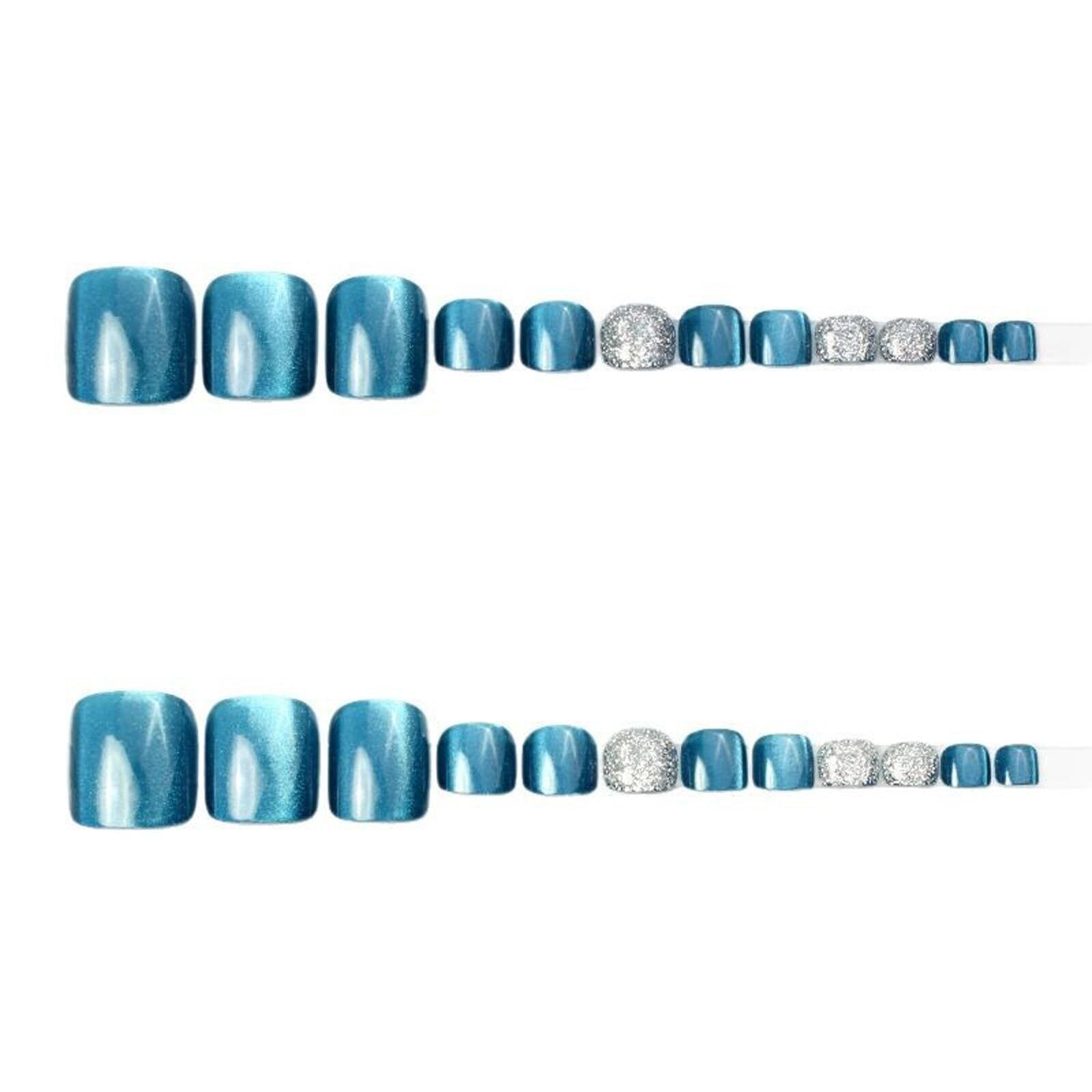 【新春セール】ネイルチップ 足用 青 24枚入 フットネイルチップ フット 足用 マグネット 夏 結婚式 成人式 付け爪 人気 可愛い かわいい シンプル 繰り返し使える