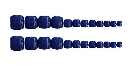 ネイビーブルー フットネイルチップ 足の爪用ネイルチップ 24枚セットつけ爪