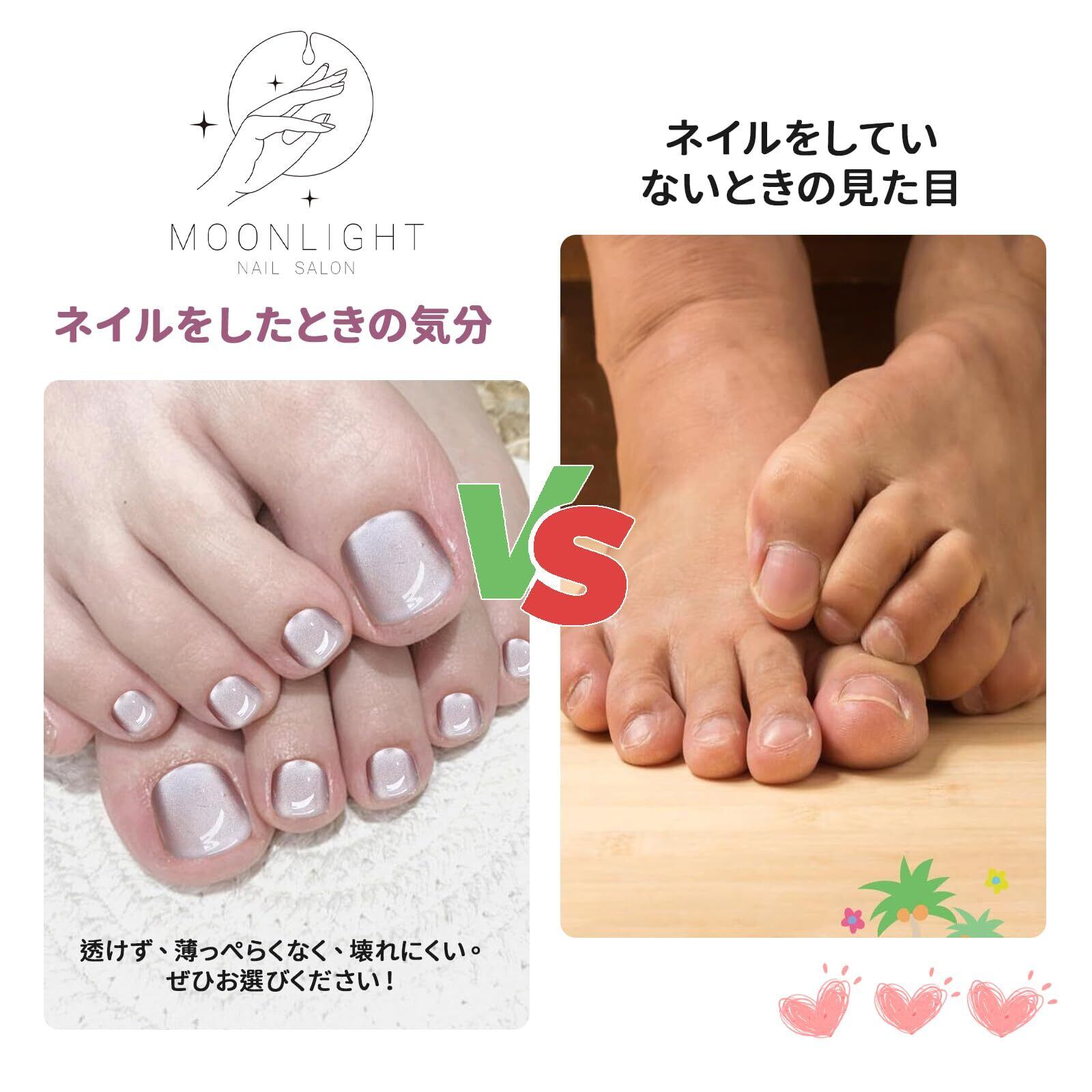 【自信を持てる足元に】足用ネイルチップを装着することで、サンダルやオープントゥの靴を履いたときに自信を持てる美しい足元が完成します。
