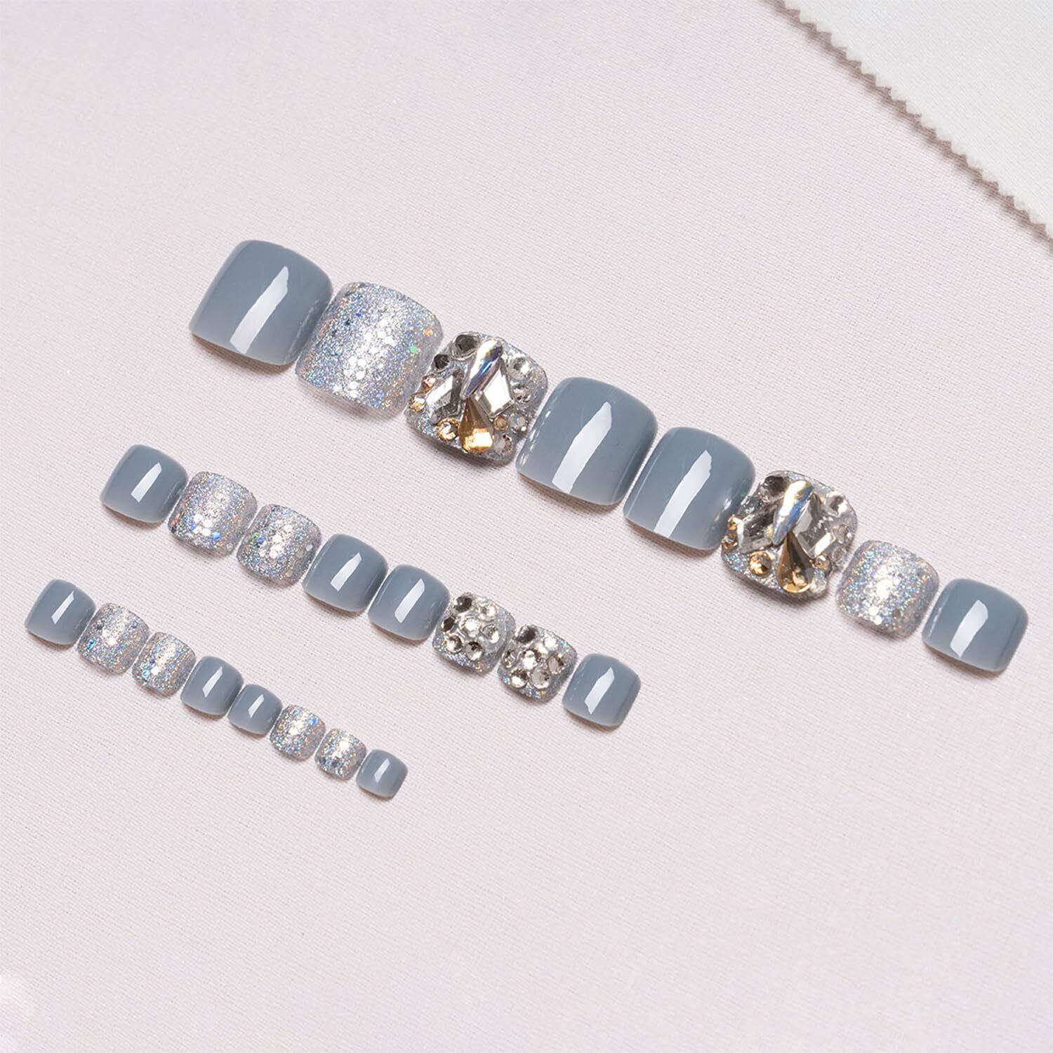 XUZOO 24枚 足用 ネイルチップ フットネイルシール フットネイルチップ ジェル 足用 ネイルチップ おしゃれ 人気 足 付け爪 つけ爪 結婚式 花嫁足用ネイルチップ 成人式 夏 足用ネイルステッカー ネイルツール 両面テープ付き (XZ264) (グレーとシルバー)