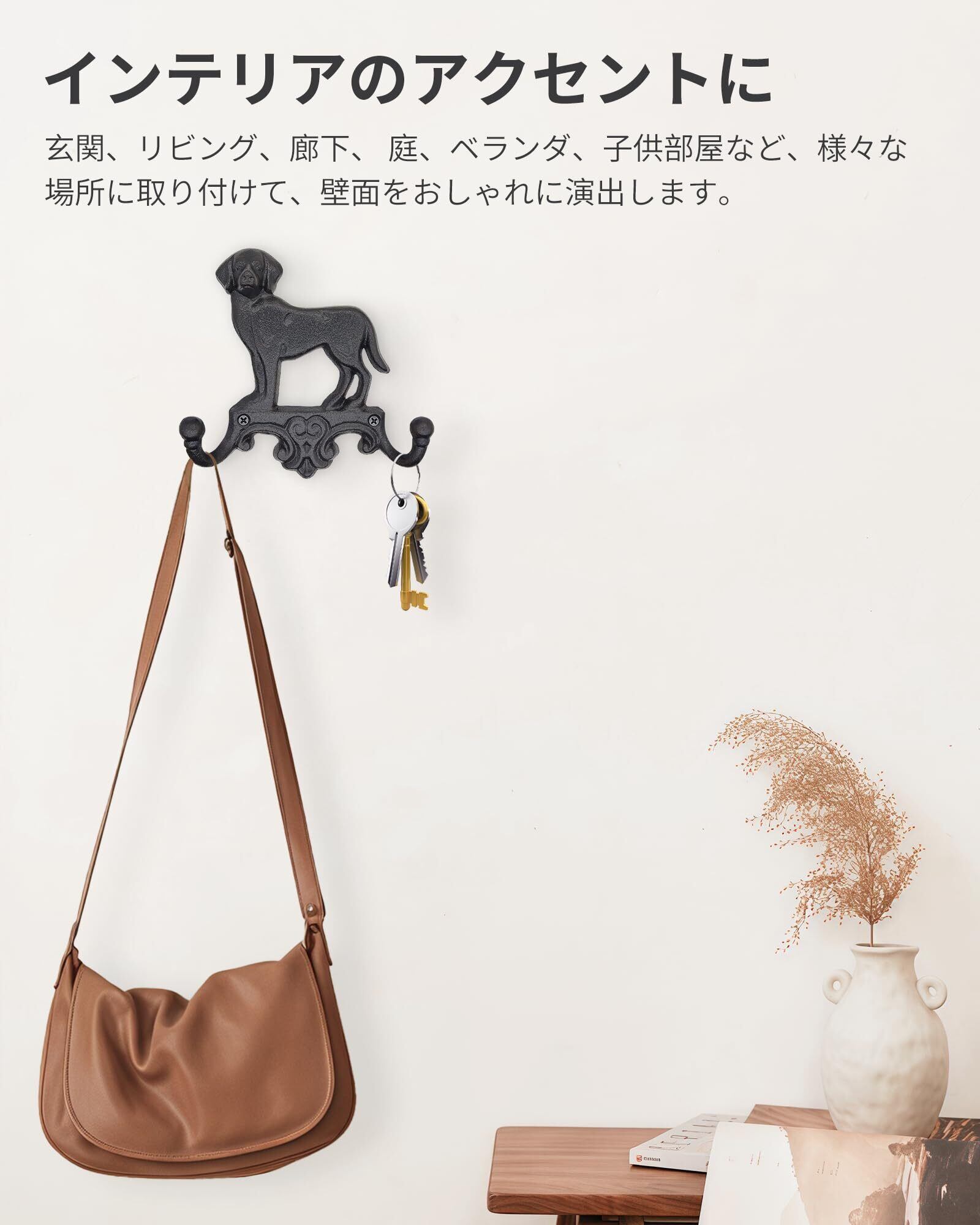 【愛らしい犬のデザイン】存在感のある犬モチーフがお部屋を彩る、おしゃれな壁掛けフックです。