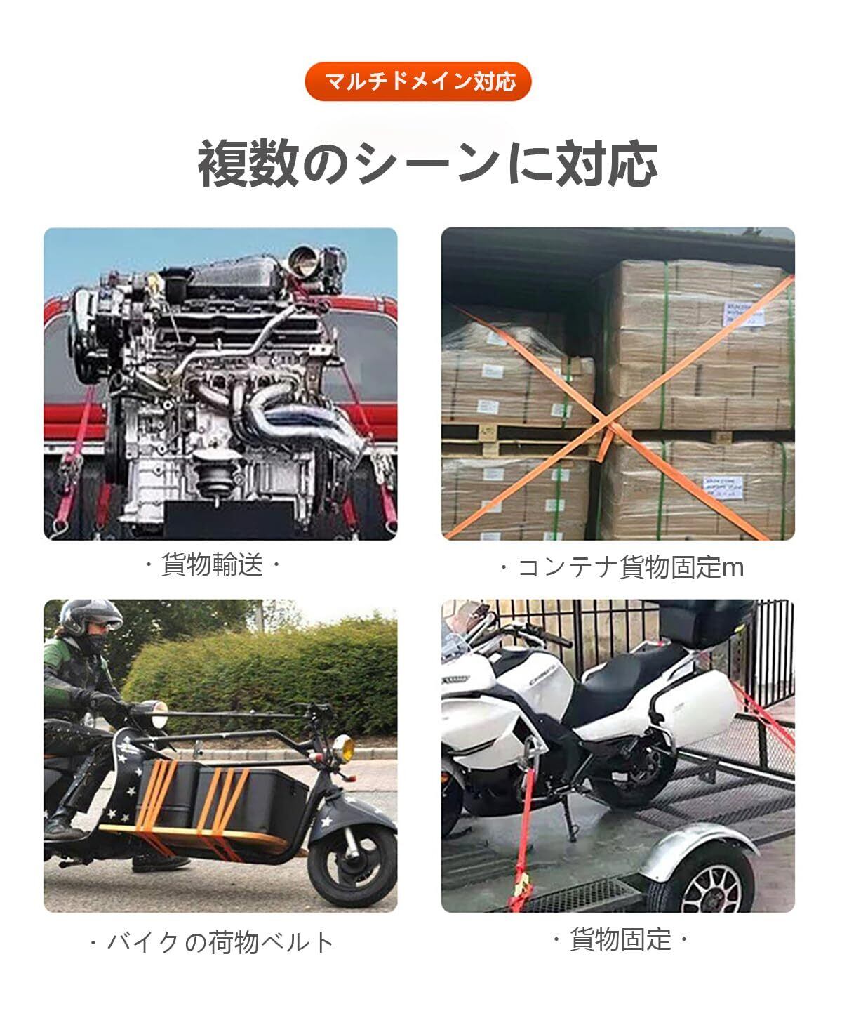 【荷物固定に便利】バイク、オートバイ、キャリーカート、トラック、自転車などへの荷物固定に加え、キャンプ、テント、シェードの固定や物干し用ロープとしても幅広く活用されています。