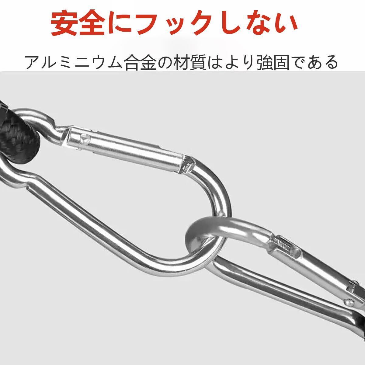 【特徴】弾性ロープの両端に装備されたカラビナは、曲げや破損、滑りの心配なく、アンカーポイントにしっかりとロックできます。