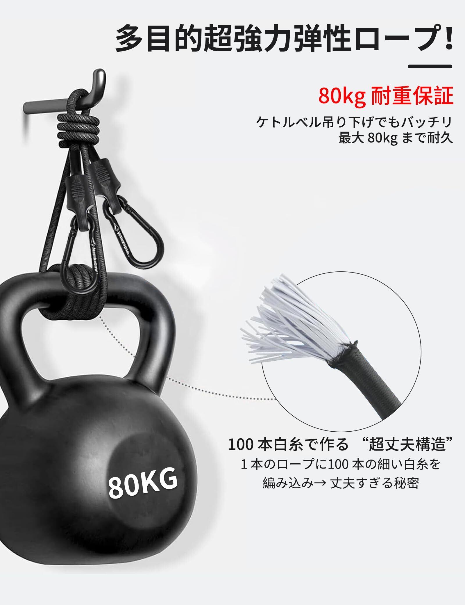 【8mm 太径ラテックスゴム】高弾性で破れにくい従来品より太い 8mm ラテックス弾力ロープ! 1.5 倍まで伸びても元の形に戻り,引っ張り強度が圧倒的に高く、長期使用でも破れにくい。サイズは 30/60(2種),1 個あたり 耐荷重約 20kg で、重たい荷物もしっかり締めつける