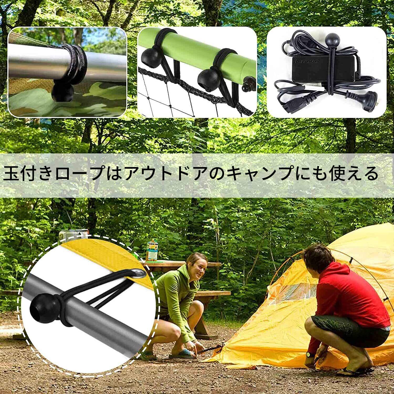 【 お好きなサイズに切って調節できる 】ゴムロープはハサミで切って長さを調節する事が可能ですので、ネット、アウトドアのひさし、自転車、バイクや車に荷物を固定できるだけではなく、箱の移動、家庭用、キャンプ用や干し物の紐用など様々な便利な使い方があります。ボールバンジーは様々な室内外の場所に広く使用され、テント、日除け、雨覆い、防水布、肩ひも、ポールと電線などの小物を固定します。
