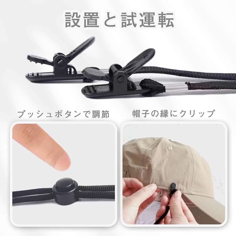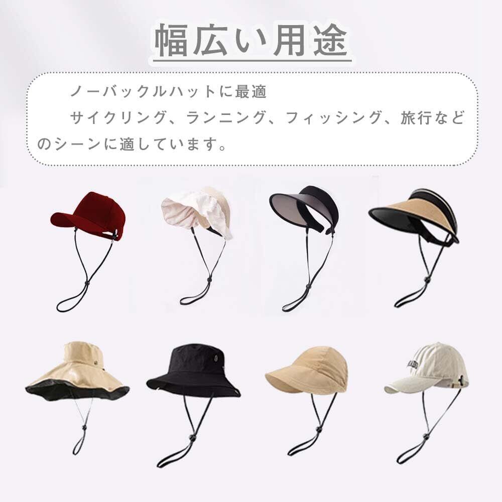 自由に調節:帽子クリップは長さを調節できる機能があるので、簡単に調整が可能です。自分の帽子の長さに合わせて自由に調節できます。アジャスターは取り外すことは出来ません。軽く押すだけであご紐のサイズを簡単に調整でき、帽子やファッションに合わせて変更できます。