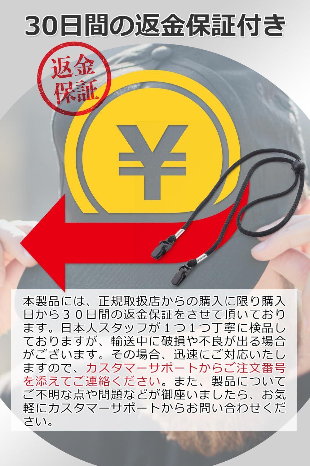 全長70㎝のストラップが帽子の着脱もしやすい長さになっています。クリップは二重構造になっていて外れにくい構造になっています。キャップやハットなど様々な帽子に対応しています。
