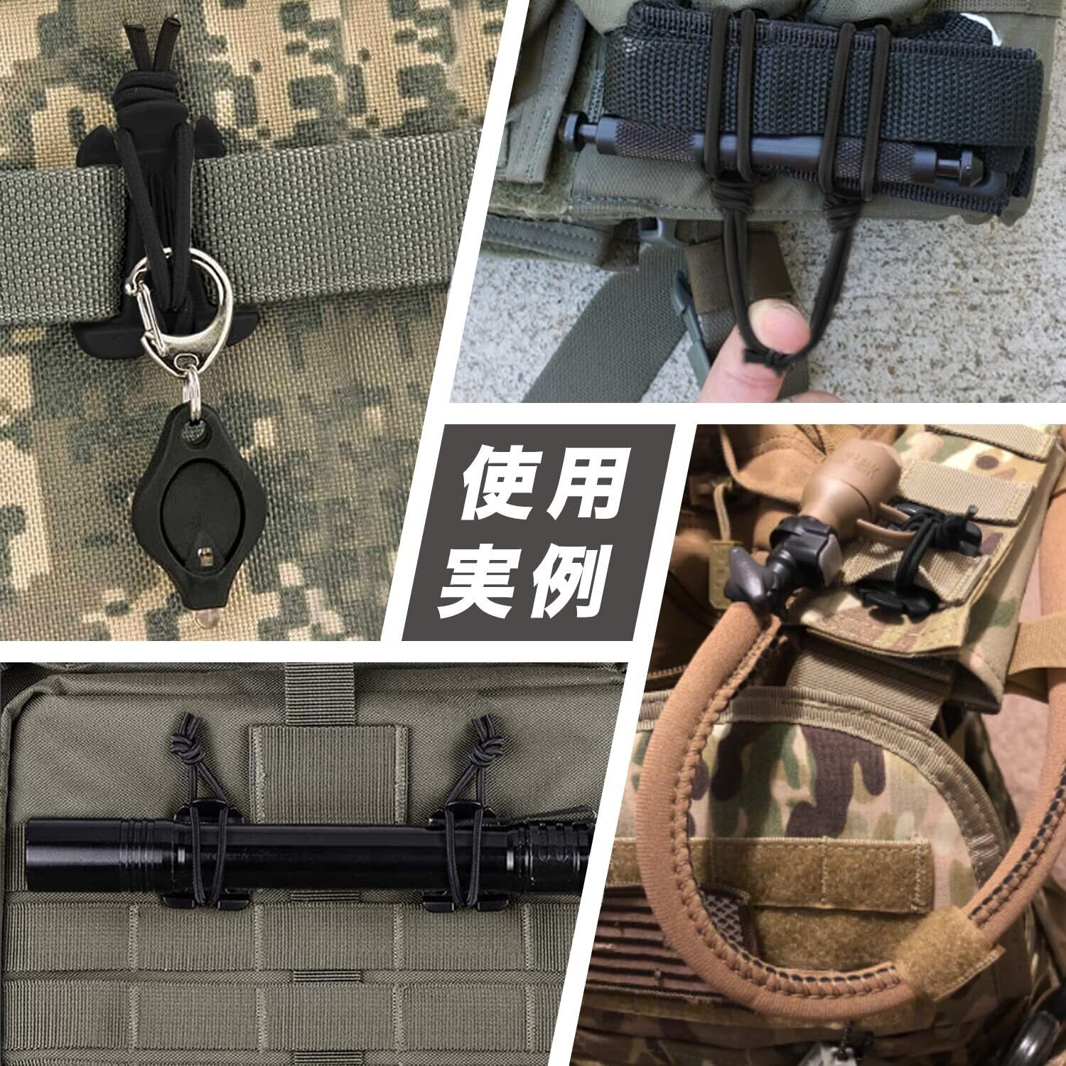 「幅広い用途」様々なアウトドア活動、登山、キャンプ、サバイバルゲームなどに大活躍し、不可欠なリュック紐アクセサリーになります。またバックル、クリップ、フックなどとして活用することもあります。