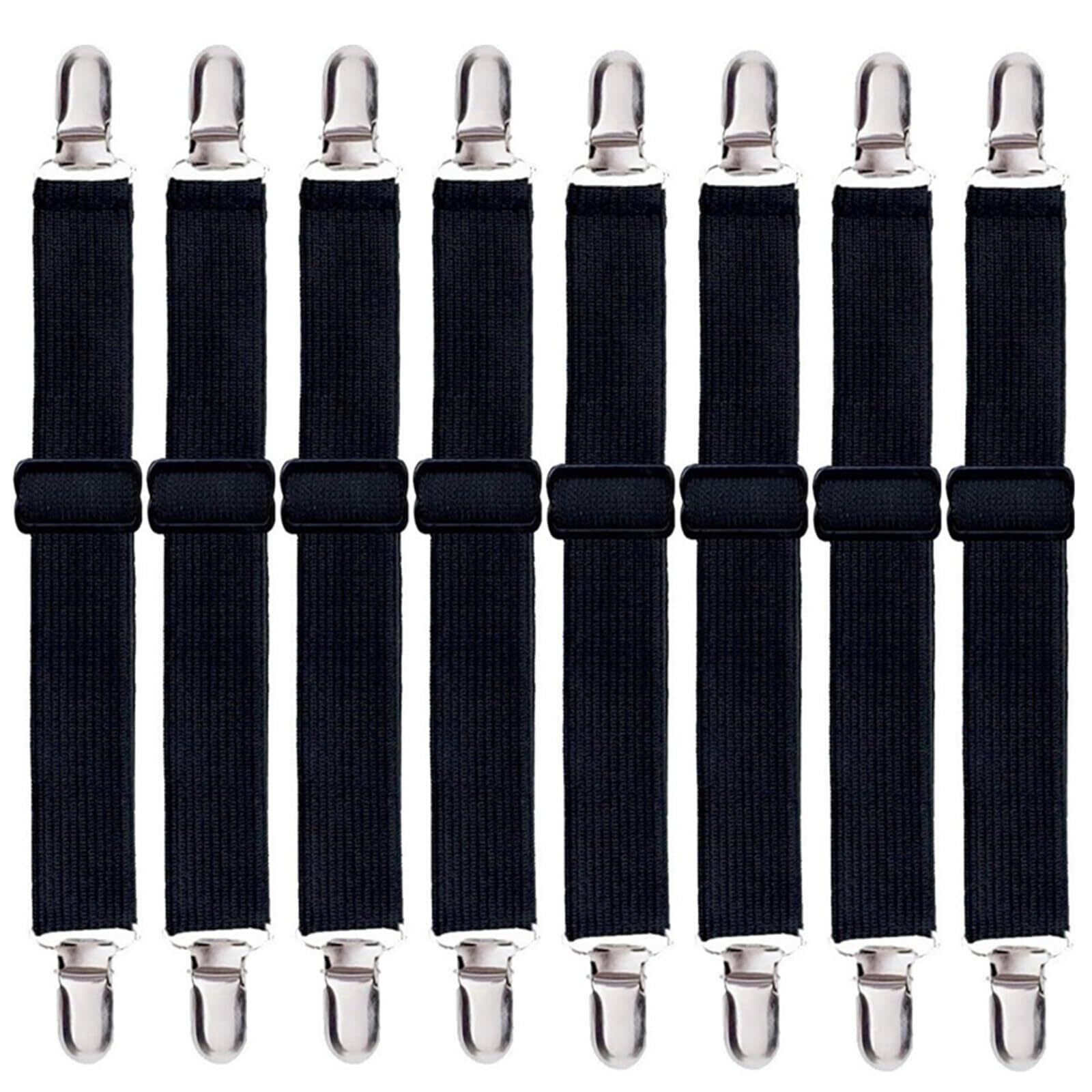 【新春セール】ベッドシーツクリップ 8本セット ズレ防止クリップ 布団固定 ベッド&ソファー コーナー止め固定 調節可能 滑り止め ゴムバンド 布団クリップ ズレ お布団ズレ落ちクリップ シーツ固定 (ブラック)