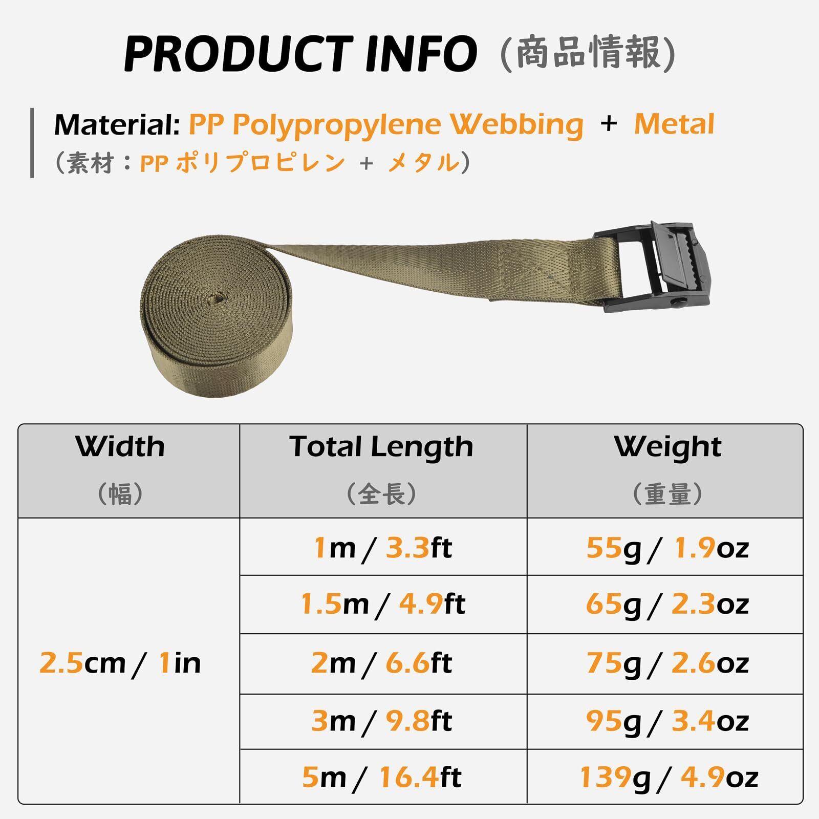 【仕様 】材質:ベルト/ポリプロピレン、カムバックル/亜鉛合金 幅:25mm 長さ:1m/1.5m/2m/3m/5m 4本セット