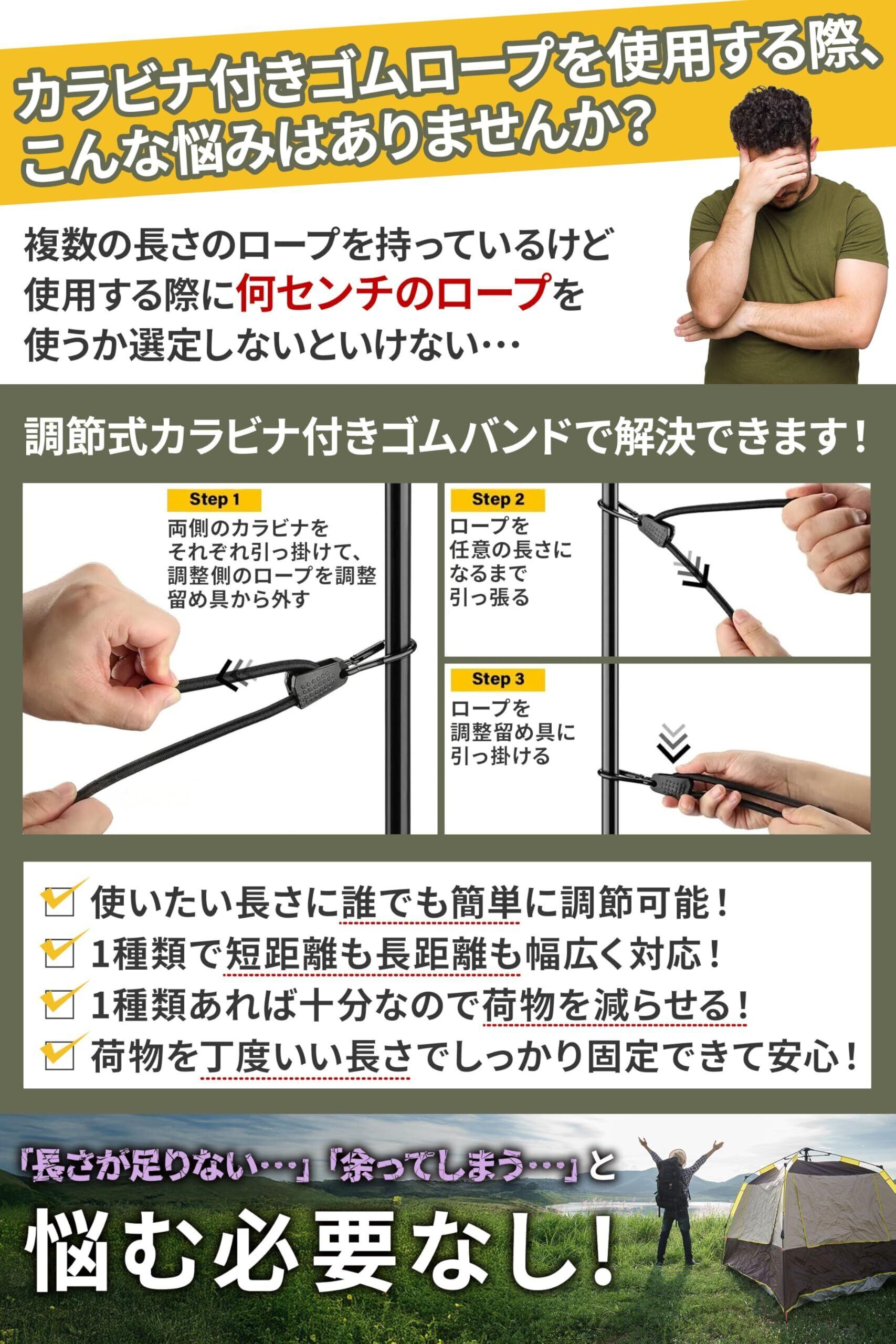 【キャンプ・アウトドア・車・バイク・DIYに最適】 テントやタープの固定、車・トラックの荷物整理、車のルーフラックやバイクの荷物固定など、幅広い用途に対応!