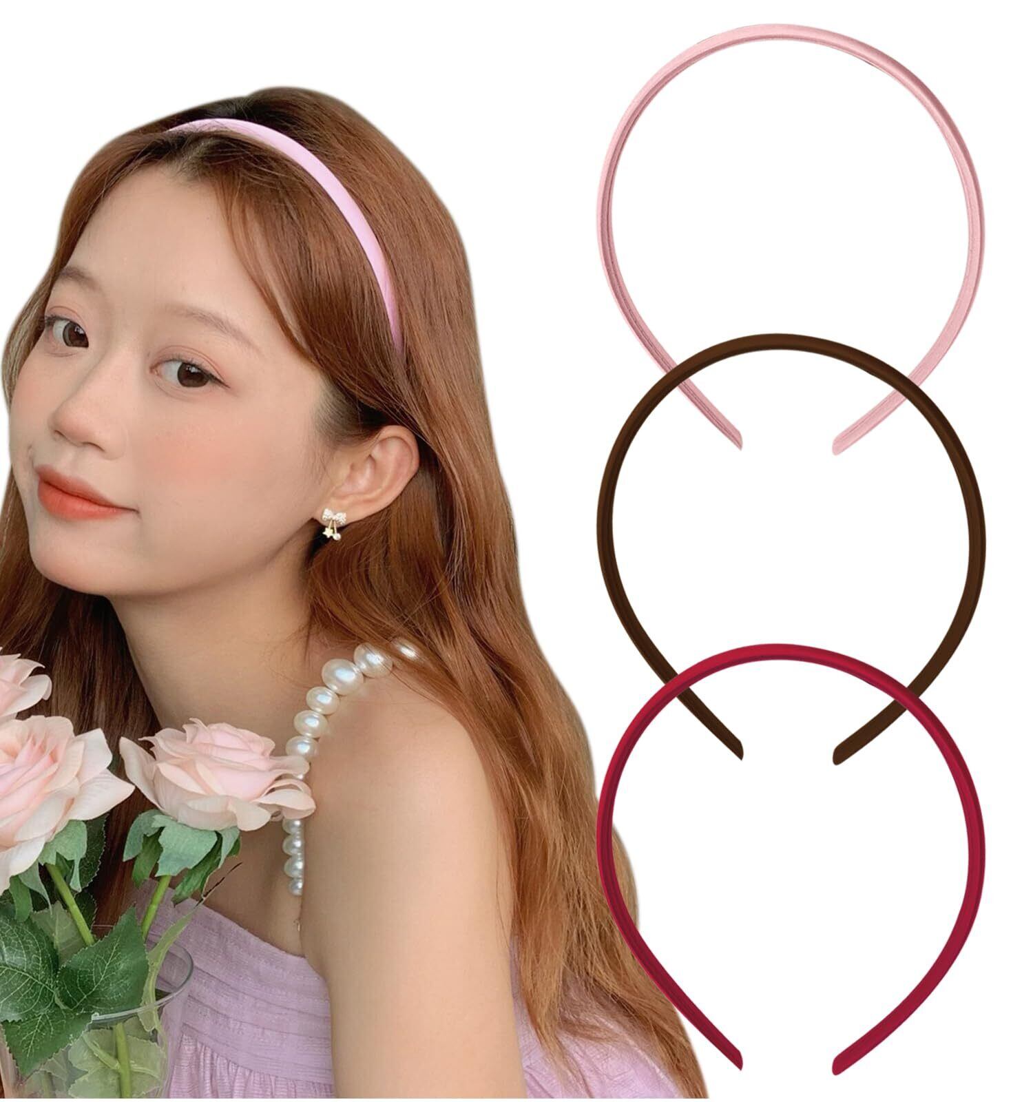 【数量限定】[Herbeluemily] カチューシャ 細め サテン 推し活 韓国 選べるセット おそろい 艶感 衣装 髪飾りDセット(ピンク ブラウン ワインレッド) HM-0048-R02-Dset
