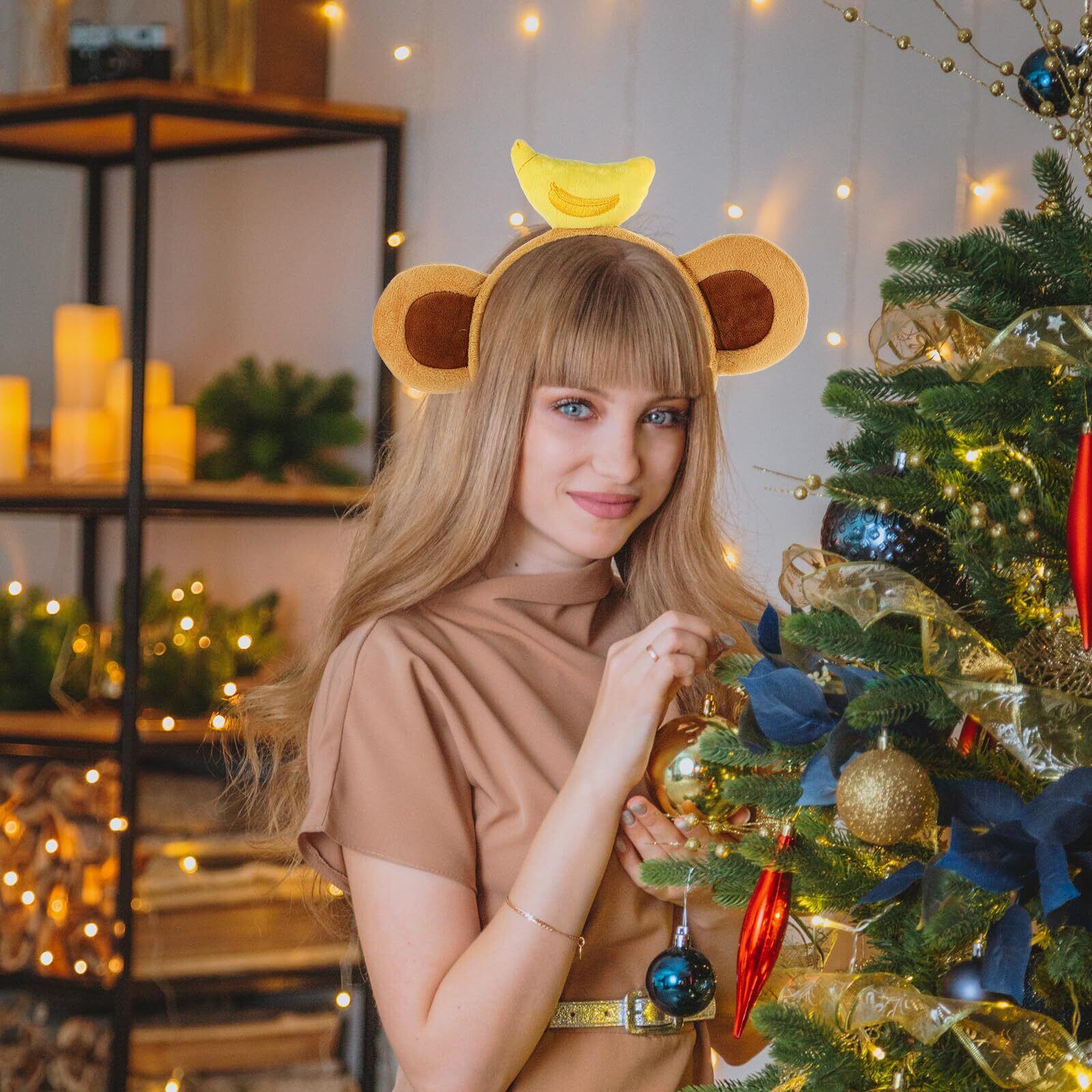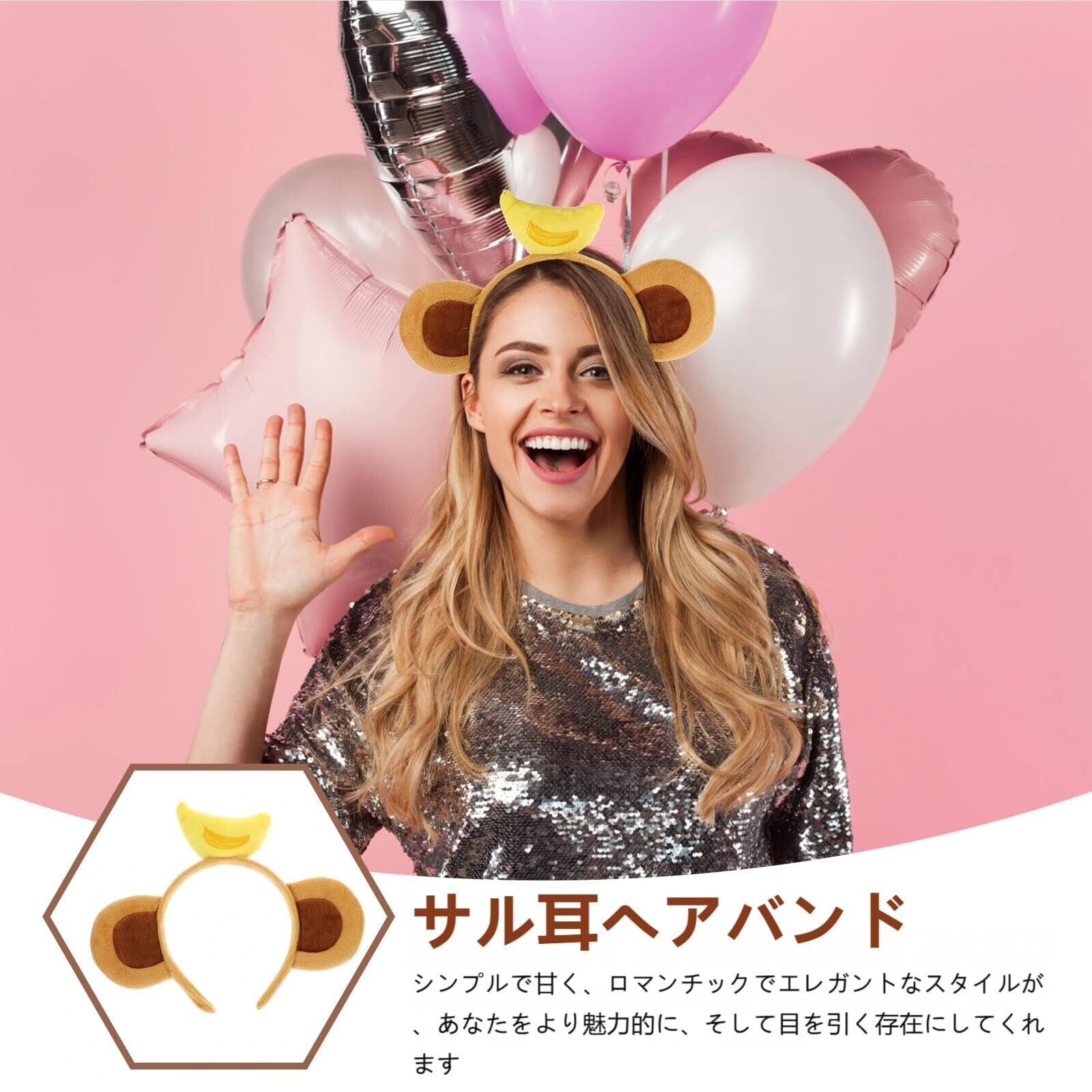 [Lurrose] コスプレ用 猿耳ヘッドバンド バナナ付き 動物カチューシャ パーティー・ハロウィーン・カーニバル用 軽量布製 かわいい動物の耳アクセサリー