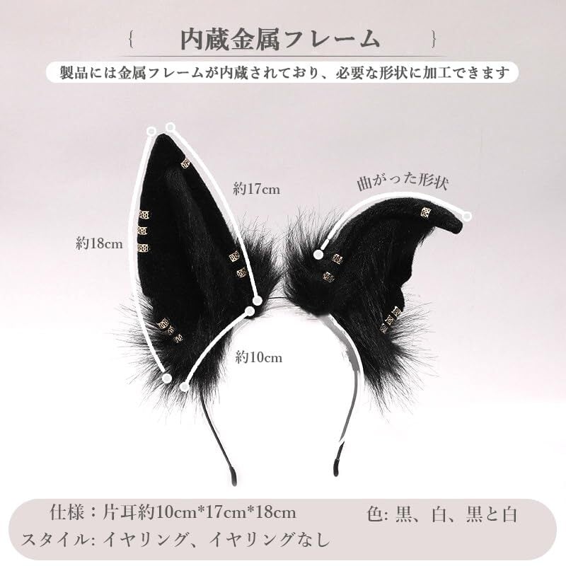 素材: 狼耳 カチューシャは高品質の素材で作られており、柔らかくて手触りが快適です、長時間の使用でもふんわりとした風合いが持続します。金属製のヘッドバンドはある程度の弾力性があり、さまざまな頭のサイズの人に適しています。内蔵の金属フレームは、さまざまなスタイリングのニーズに合わせて任意の形状に曲げることができます。